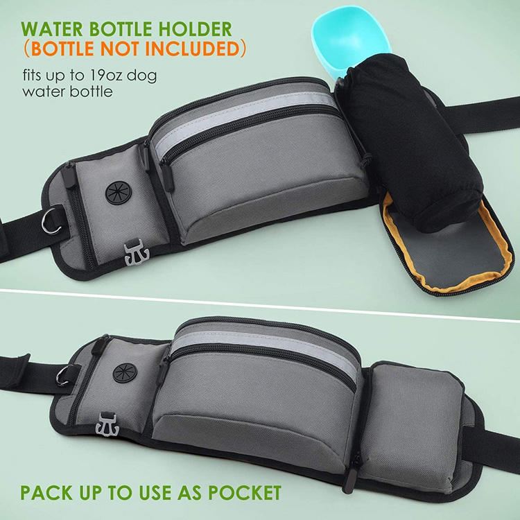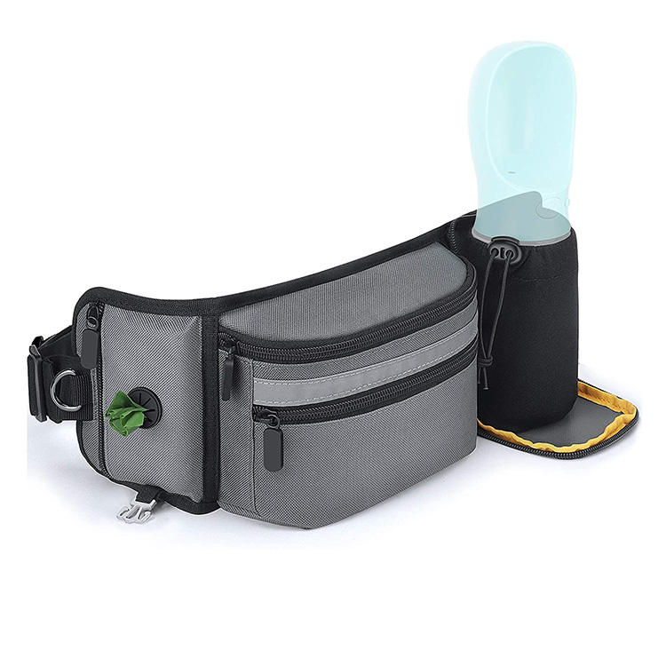 | أزياء المشي في الهواء الطلق تشغيل الكلب التدريب حزمة مراوح الحيوانات الأليفة علاج حقيبة حامل زجاجة مع موزع حقيبة البوب | |