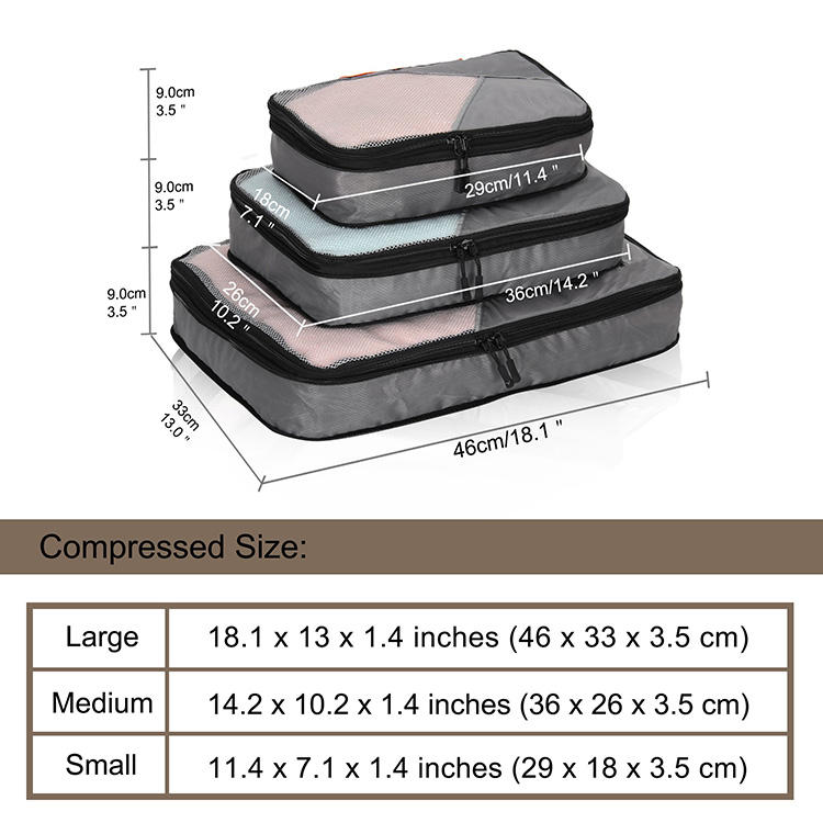عالية الجودة بالجملة البوليستر ضغط السفر المنظم حقيبة مجموعة الأمتعة اكسسوارات الملابس 3 قطع التعبئة مكعب مجموعة | ||