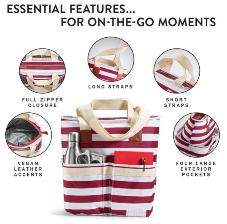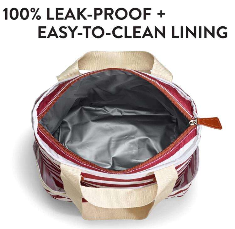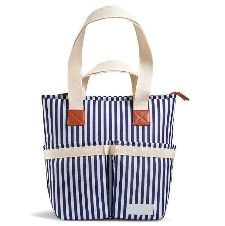 بيت / منتجات / حقيبة تبريد وحقيبة غداء / حقيبة الغداء / أغذية مخططة قابلة لإعادة الاستخدام بالجملة حقيبة يد غداء معزولة حراريًا بسعر معقول من النبيذ والبيرة حقيبة تبريد