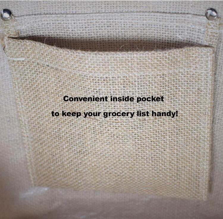 بند | أكياس التسوق القابلة لإعادة الاستخدام من القنب ، حقيبة تسوق من الجوت مع جيب بالداخل |