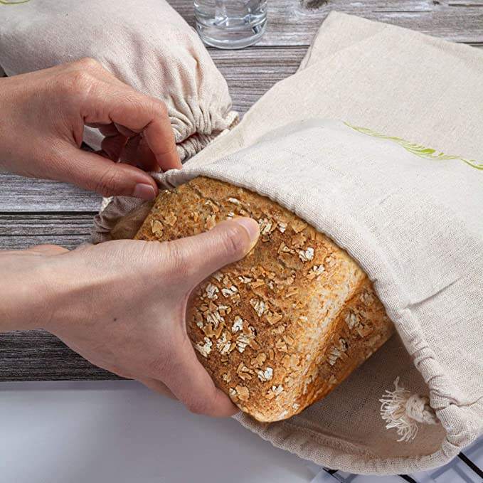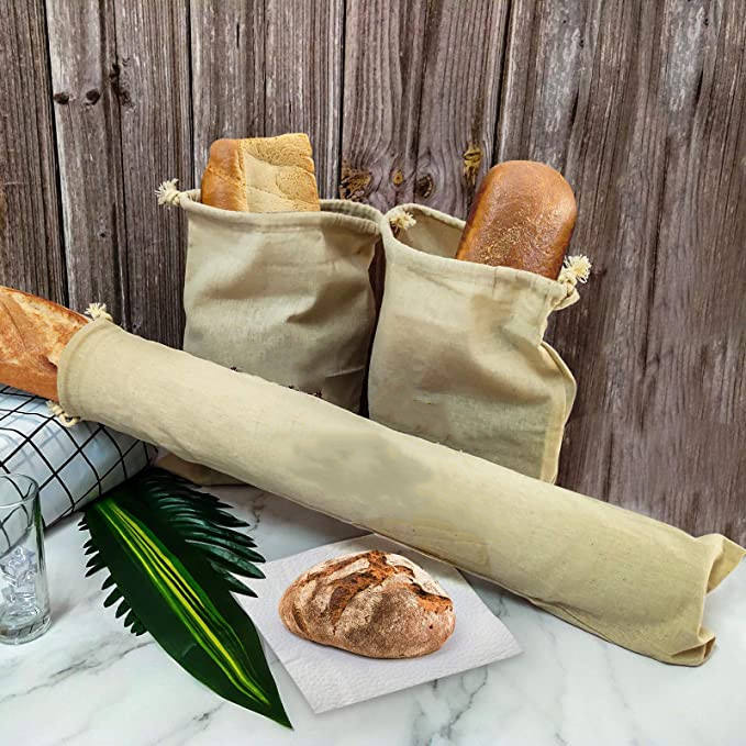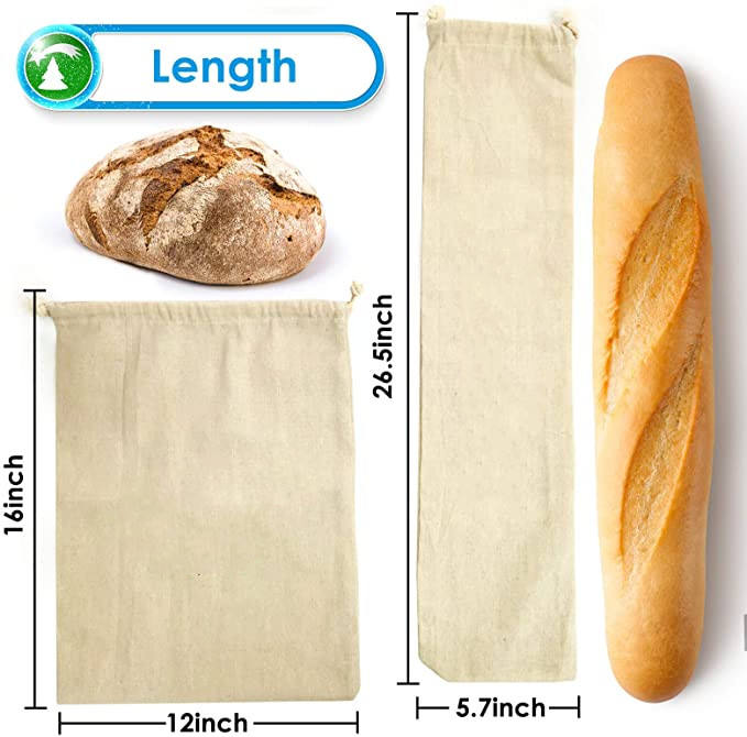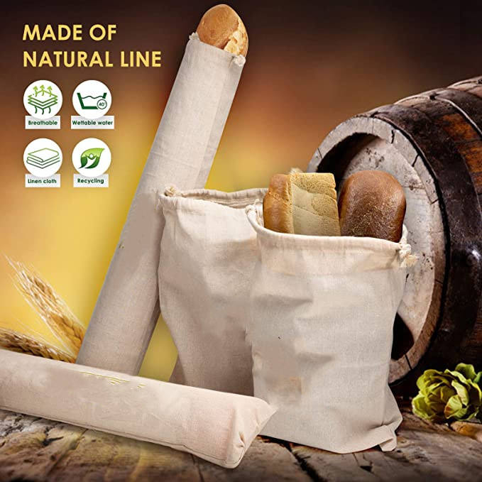 4 عبوات كبيرة قابلة لإعادة الاستخدام أكياس خبز من الكتان العضوي أكياس خبز قطنية صديقة للبيئة مثالية للخبز محلي الصنع | |