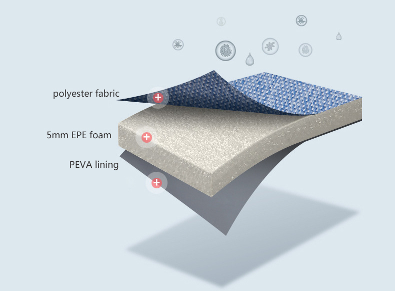 | مادة | بوليستر + رغوة EPE + بطانة PEVA | ||||||