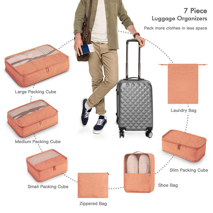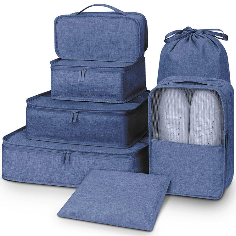 الجملة البوليستر 7 في 1 حقيبة السفر المنظم مجموعة مكعبات خفيفة الوزن قابلة للغسل مع حقيبة مستحضرات التجميل حقيبة الأحذية | ||