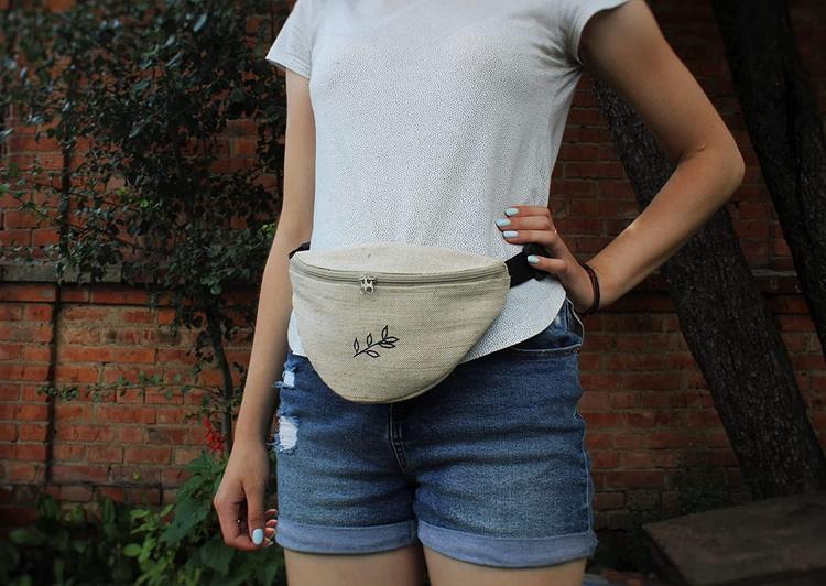 بيت / منتجات / فاني باك / الجملة عالية الجودة الرياضة صديقة للبيئة القطن القنب الخصر حقيبة حزمة مراوح الكتان بوم أكياس للمشي الركض
