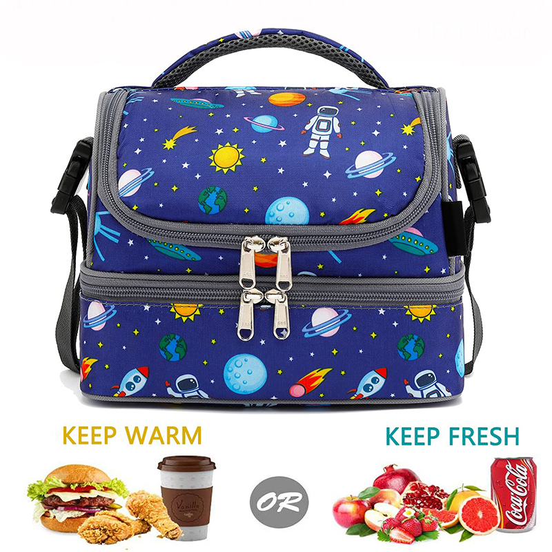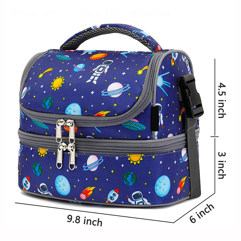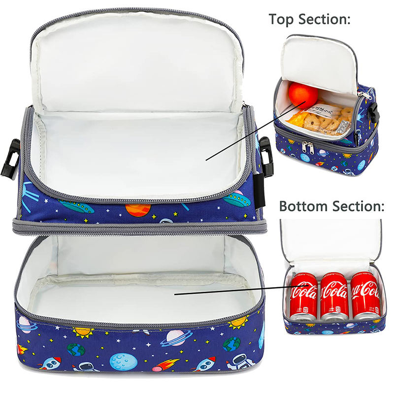 | الجملة مزدوجة المقصورة لطيف فضاء حقيبة طعام معزول مدرسة بنين الحرارية برودة حقيبة | ||
