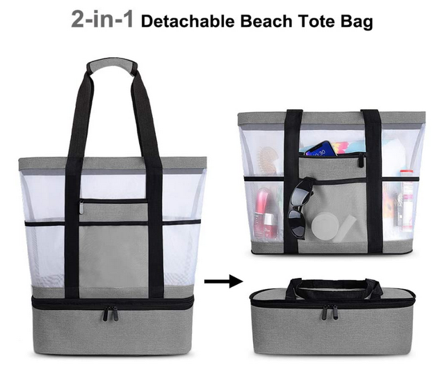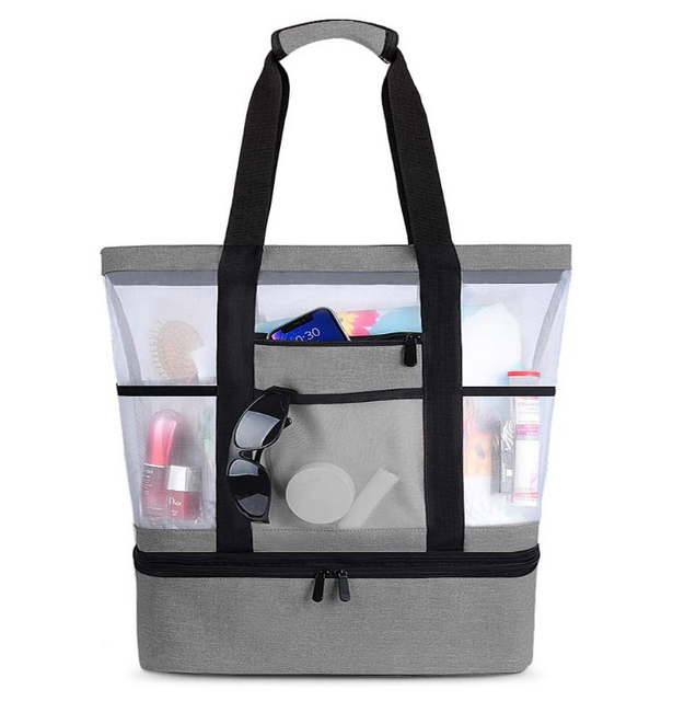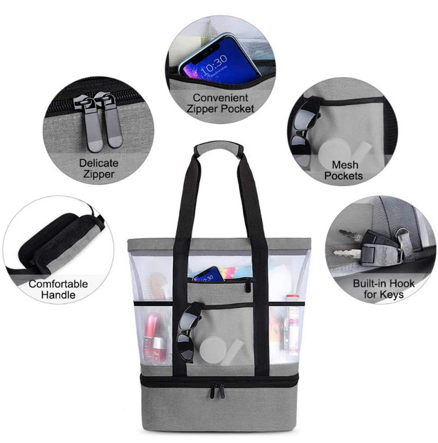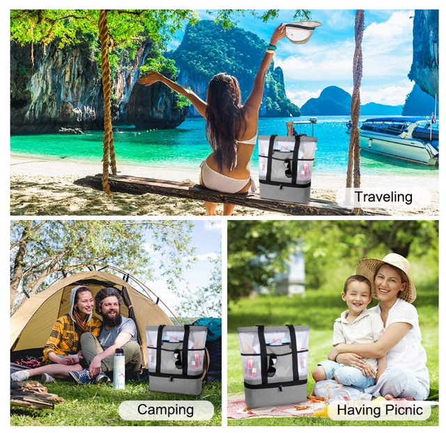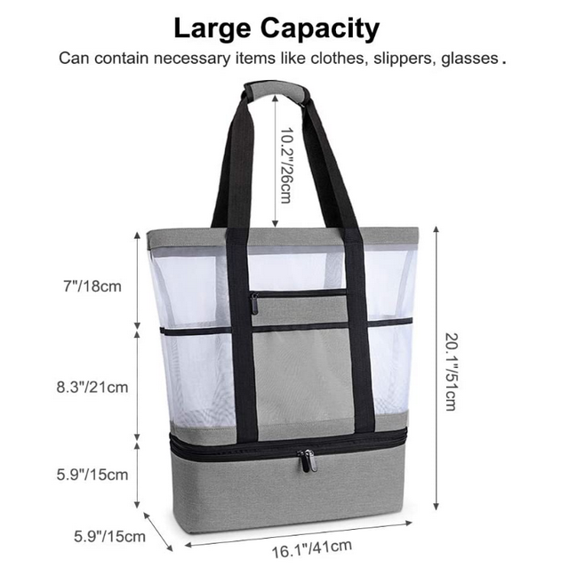 بند | الجملة نايلون شبكة حقيبة الشاطئ ، متعددة الوظائف طبقتين نزهة حقيبة حمل برودة |