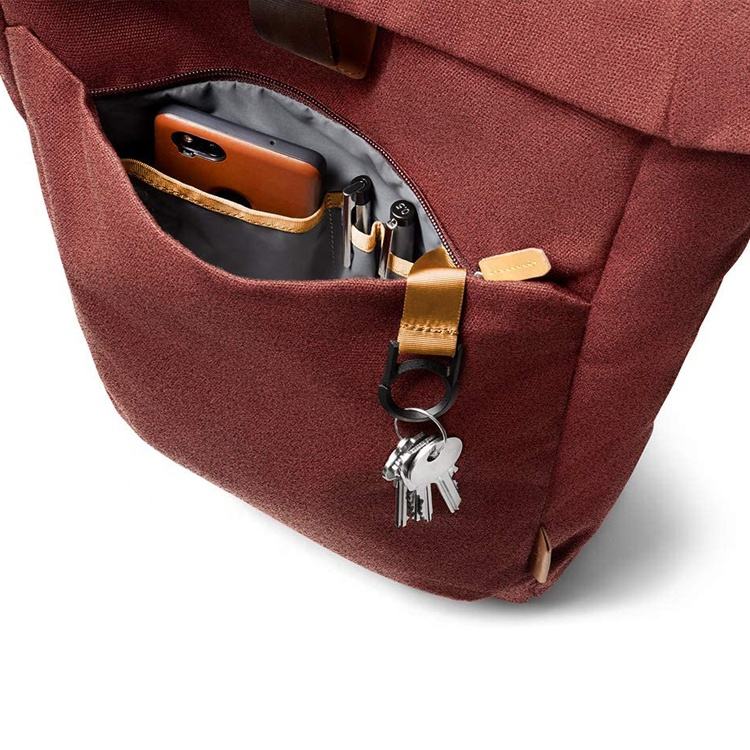 يحتوي الجيب الذي يمكن الوصول إليه بسرعة في المقدمة على مشبك مفاتيح سهل الاستخدام ، لذا فإن الأشياء الثمينة اليومية موجودة هناك في أي لحظة.