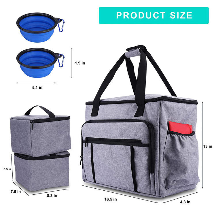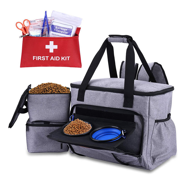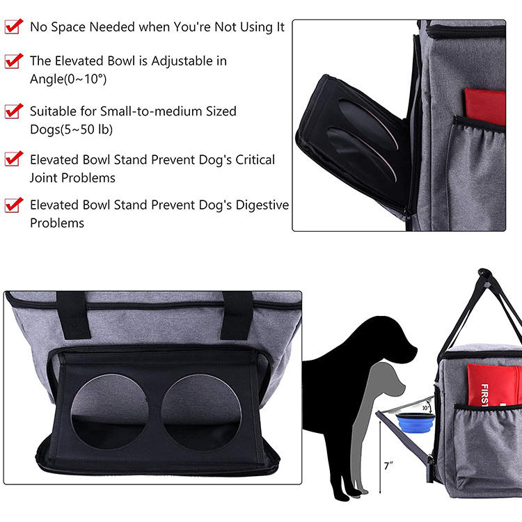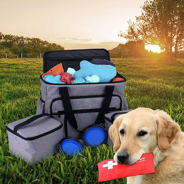 | مجموعة حقيبة تخزين منتجات الحيوانات الأليفة ذات السعة الكبيرة ، وعاء طعام للكلاب لرحلة قصيرة حقيبة سفر محمولة للكلاب | |