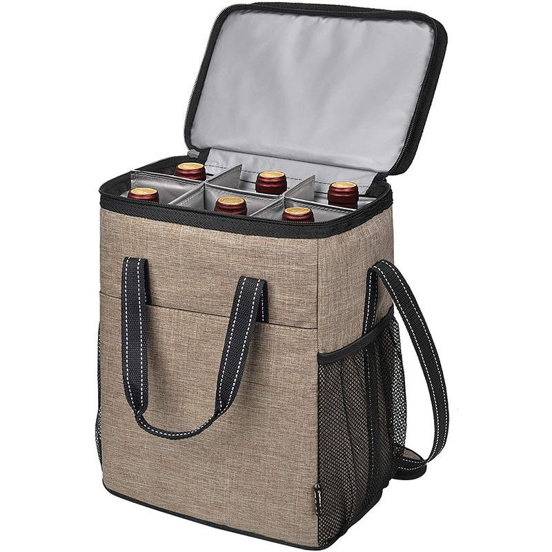 | اسم | المحمولة 6 زجاجات النبيذ حمل حقيبة حمل النبيذ مع برودة مع فتاحة المفتاح لنزهة السفر الشاطئ | ||||||