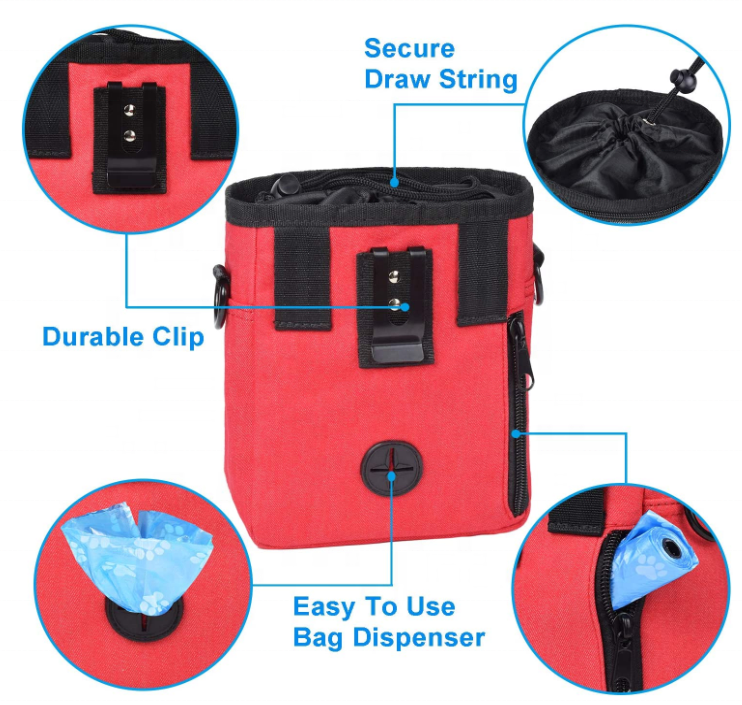| اسم | حقيبة علاج للكلاب ، حقيبة تدريب للكلاب مع موزع أكياس أنبوب مدمج | |||