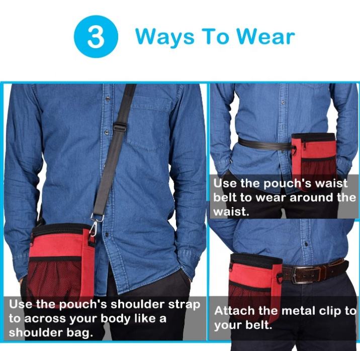 * 3 طرق للارتداء - استخدم حزام الخصر وحزام الكتف القابل للإزالة والضبط مقاس 52 بوصة ، يمكنك ارتدائه حول الخصر ، عبر جسمك مثل حقيبة الكتف ، أو ببساطة قم بإرفاق المشبك المعدني بحزامك