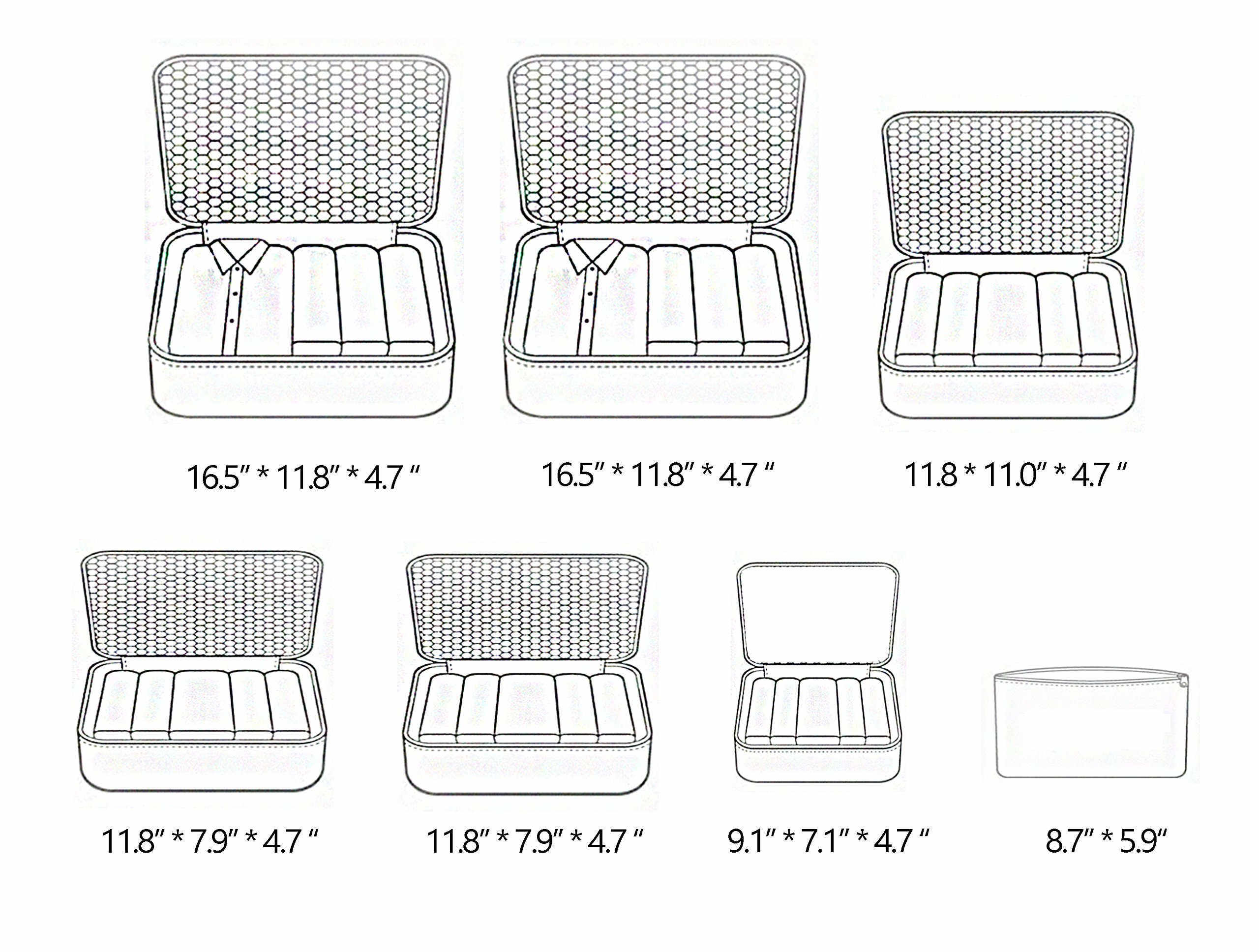 | بند | 7 قطع مكعبات تعبئة للسفر مع حقيبة أحذية وحقيبة أدوات الزينة ومحفظة وحقيبة تخزين الكابلات | ||||||