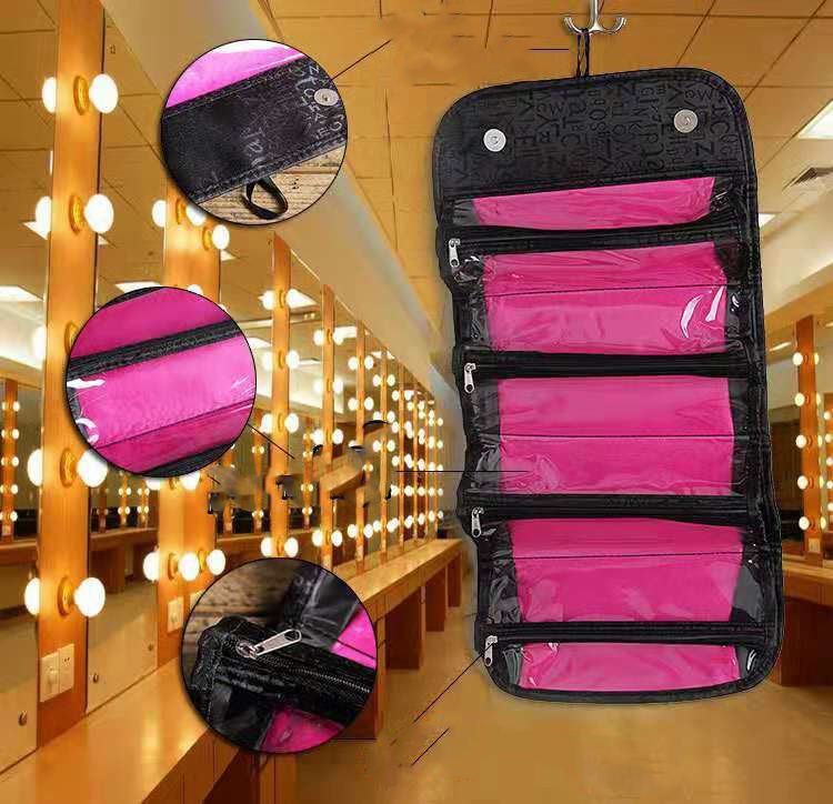 حقيبة سفر مخصصة متعددة الجيوب بشعار مخصص مع خطاف معلق ، حقيبة مستحضرات تجميل مقاومة للماء منظم السفر