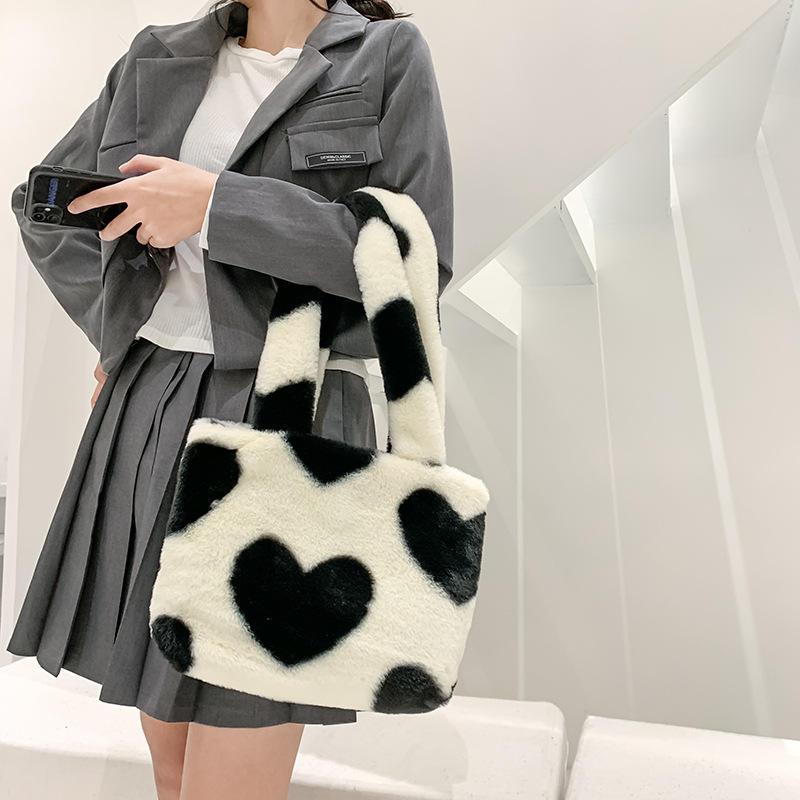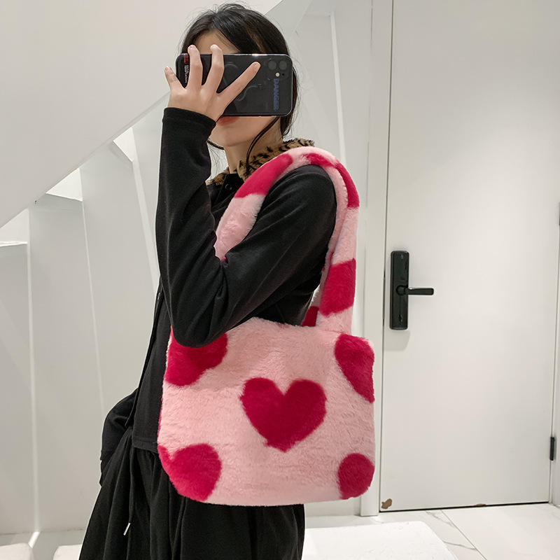 | جميل القلب تصميم الأزياء رقيق حقيبة يد السيدات التسوق في الهواء الطلق المرأة فروي المحفظة حمل حقيبة | |