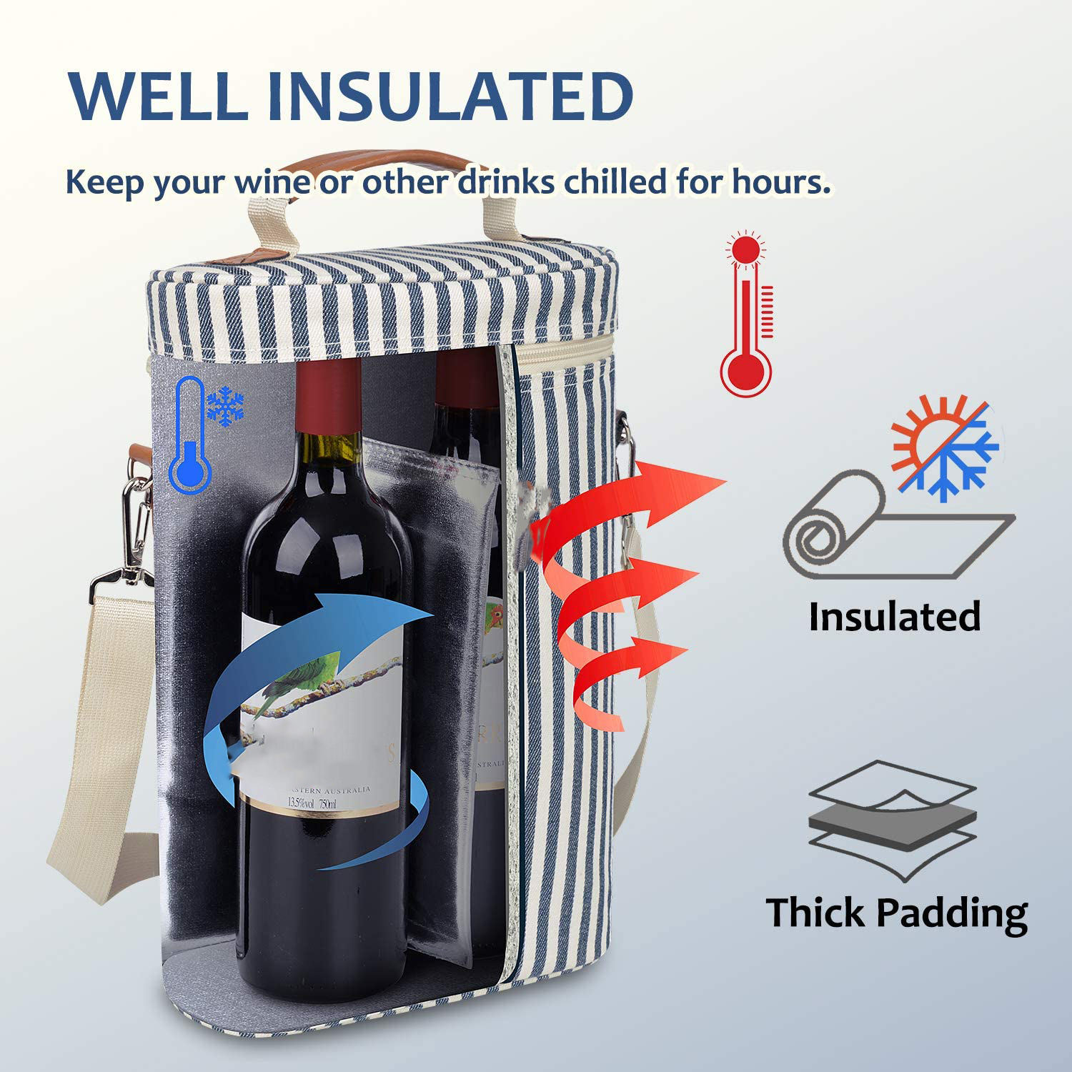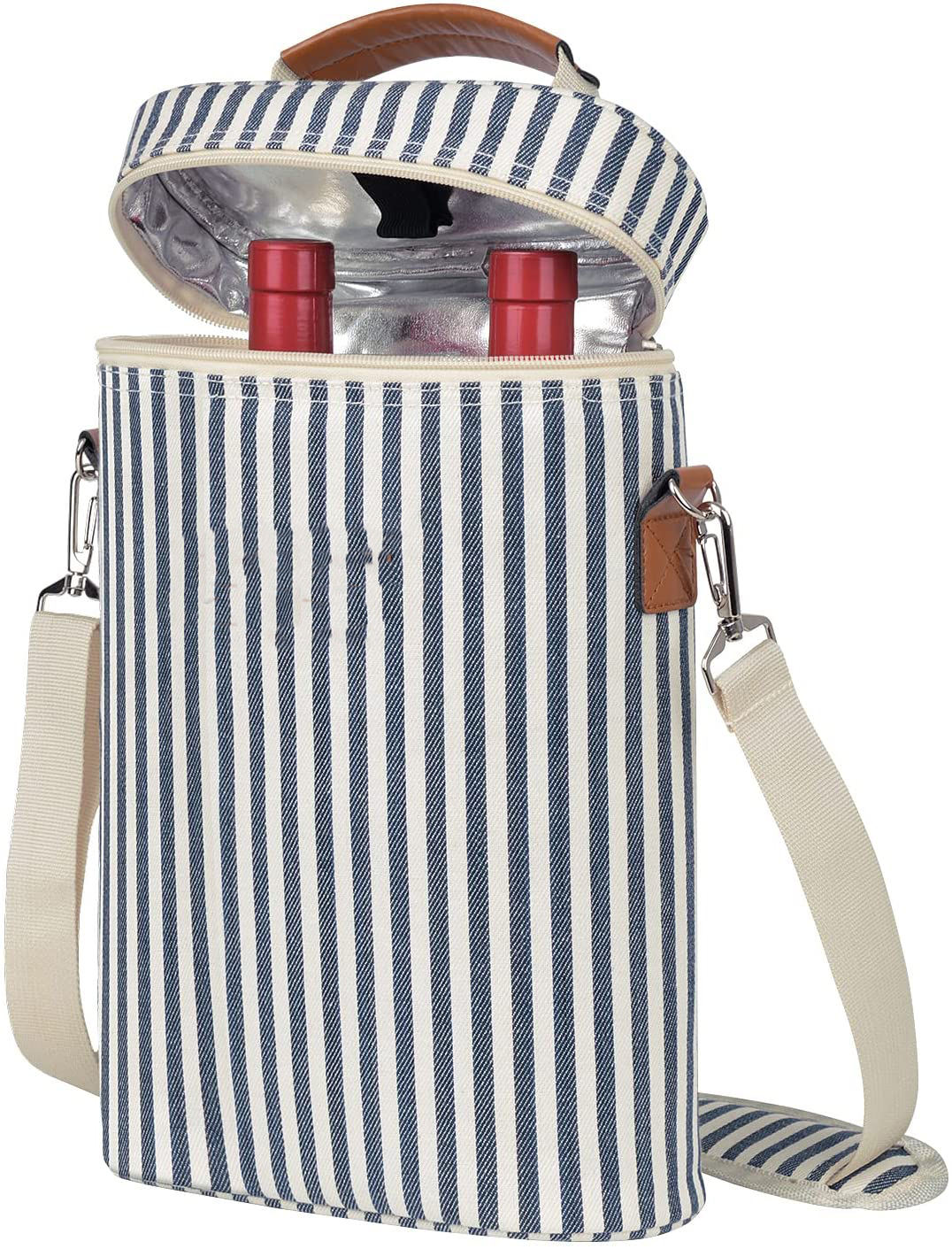 شعار مخصص معزول مبطن واحد أكياس النبيذ برودة المحمولة النبيذ حمل الناقل للشاطئ