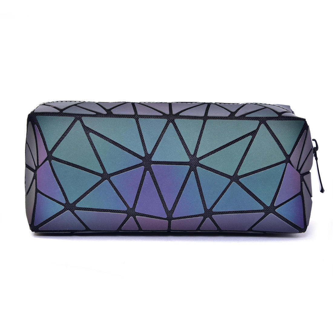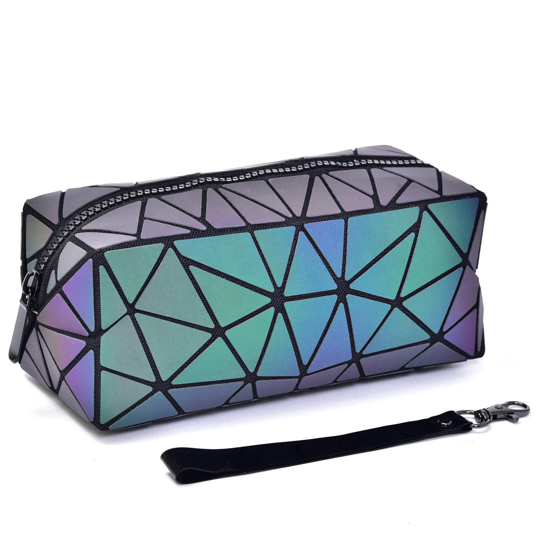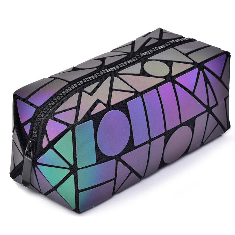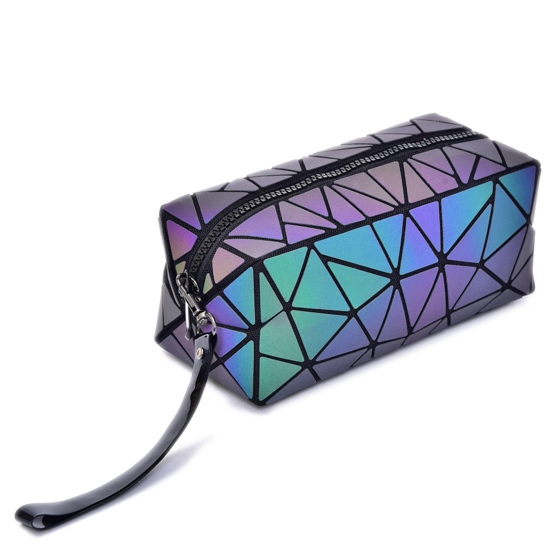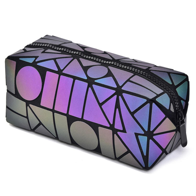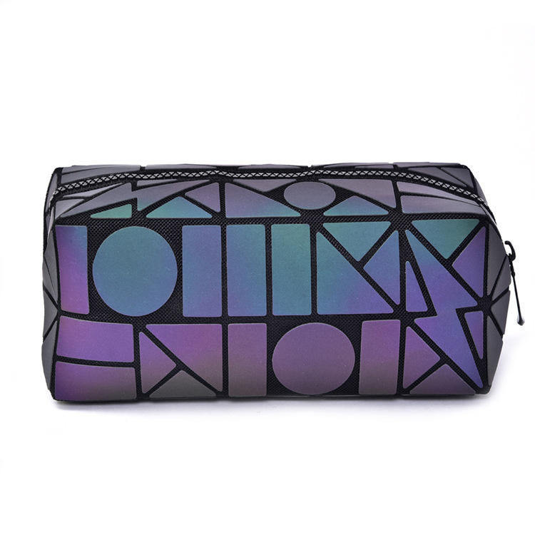 بيت / منتجات / حقيبة مستحضرات التجميل وأدوات الزينة / حقيبة مستحضرات التجميل / حار بيع مخصص هندسية ملونة حقيبة مستحضرات التجميل ماكياج المحمولة حقيبة السفر مضيئة بو حقيبة مستحضرات التجميل الكبيرة