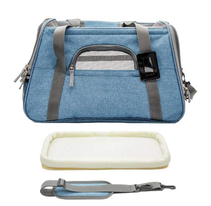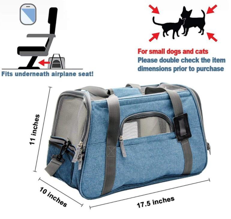 | بند | حاملة قطط ناعمة الجوانب قابلة للطي مع حصيرة حاملات الحيوانات الأليفة المعتمدة من شركة طيران ، تناسب مقعد الطائرة للكلاب والقطط الصغيرة |