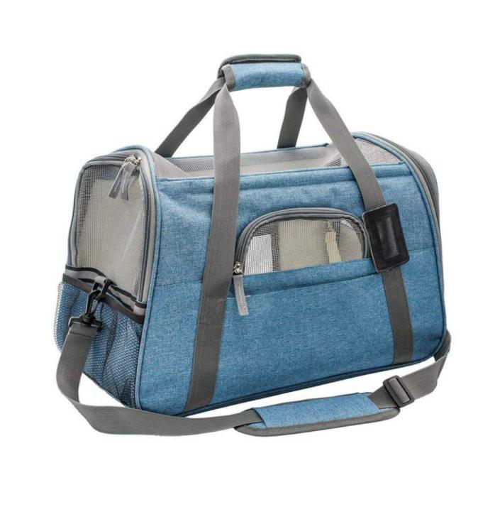حاملة قطط ناعمة الجوانب قابلة للطي مع حصيرة حاملات الحيوانات الأليفة المعتمدة من شركة طيران ، تناسب مقعد الطائرة للكلاب والقطط الصغيرة