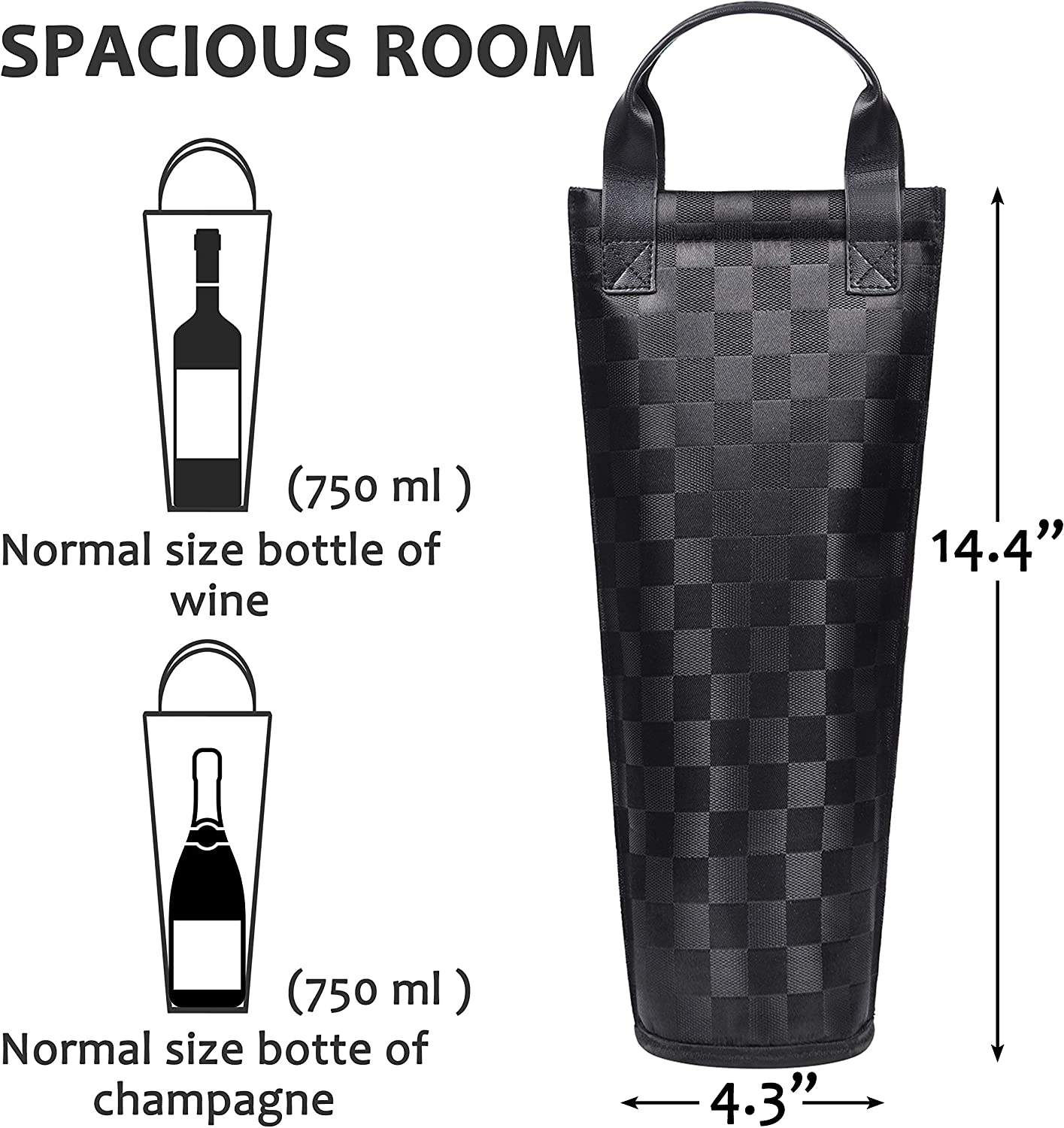 حامل نبيذ معزول حمل زجاجة نبيذ مبطن للسفر مع مقبض وحزام كتف قابل للتعديل