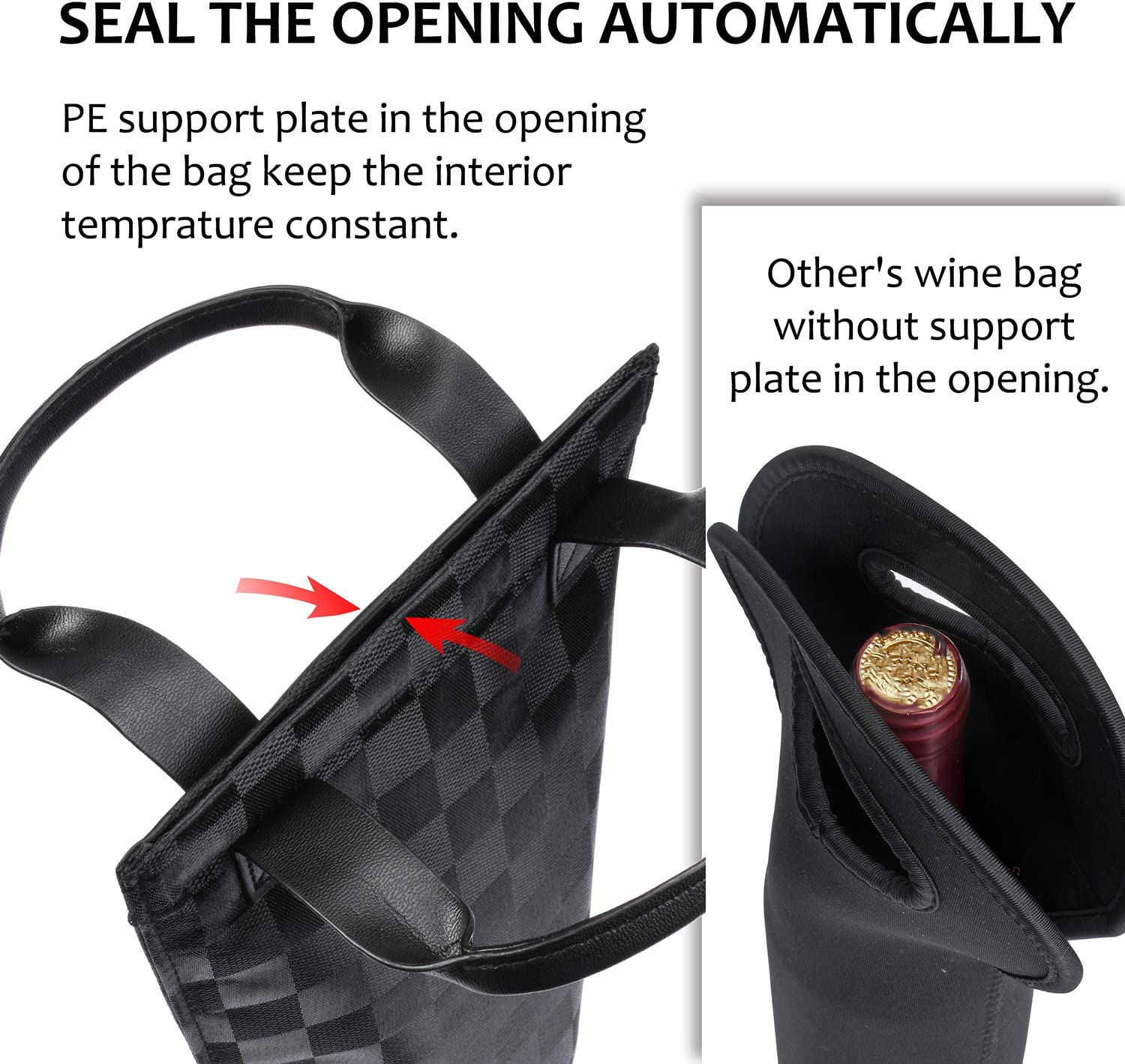 بيت / منتجات / حقيبة تبريد وحقيبة غداء / كيس النبيذ / حامل نبيذ معزول حمل زجاجة نبيذ مبطن للسفر مع مقبض وحزام كتف قابل للتعديل