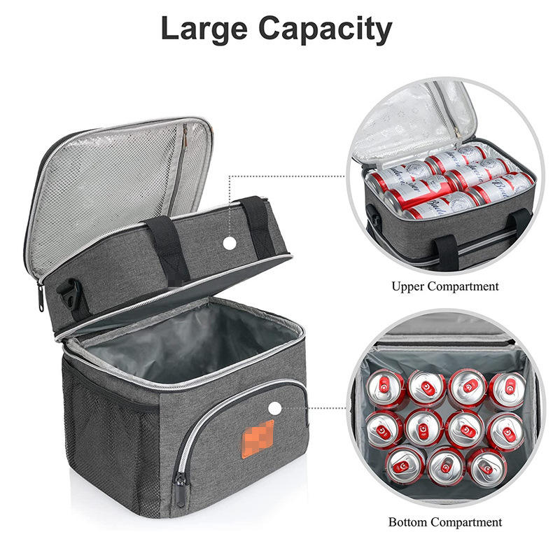 بيت / منتجات / حقيبة تبريد وحقيبة غداء / حقيبة الغداء / حقائب غداء محمولة قابلة لإعادة الاستخدام بشعار مخصص حقيبة غداء بمقصورة مزدوجة للرجال والنساء