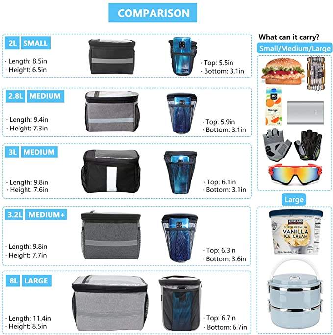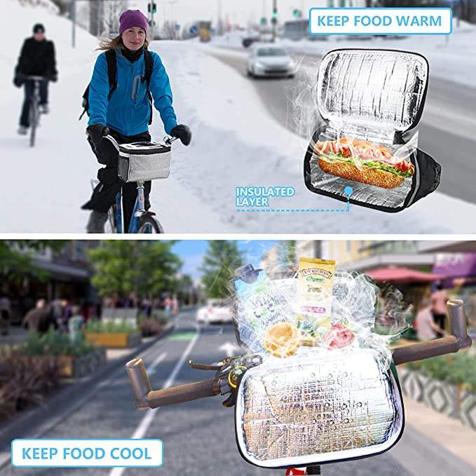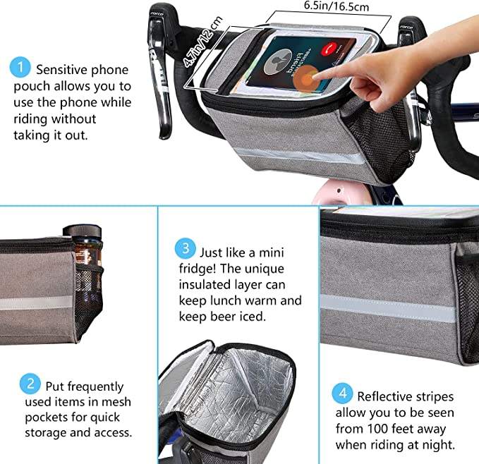 | حقيبة تبريد الدراجة الحرارية المعزولة بسلة الدراجة المقاومة للماء ، حقيبة مقود الدراجة مع حامل الهاتف للدراجة | |