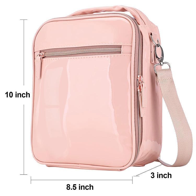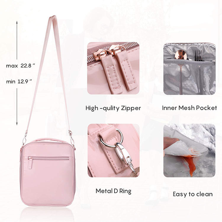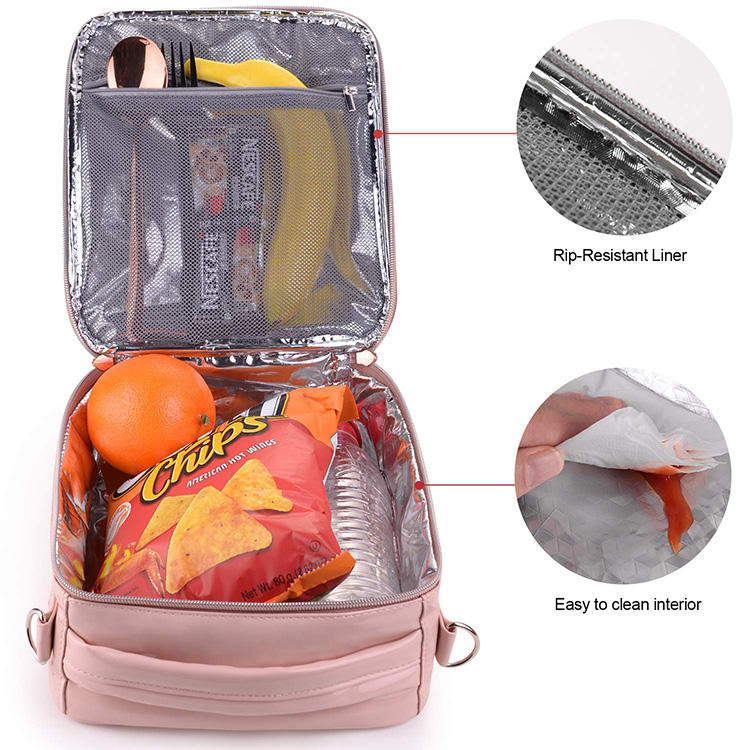 | حقيبة تبريد صندوق حفظ الطعام من جلد البولي يوريثان باللون الوردي المقاوم للماء للفتيات والنساء | ||