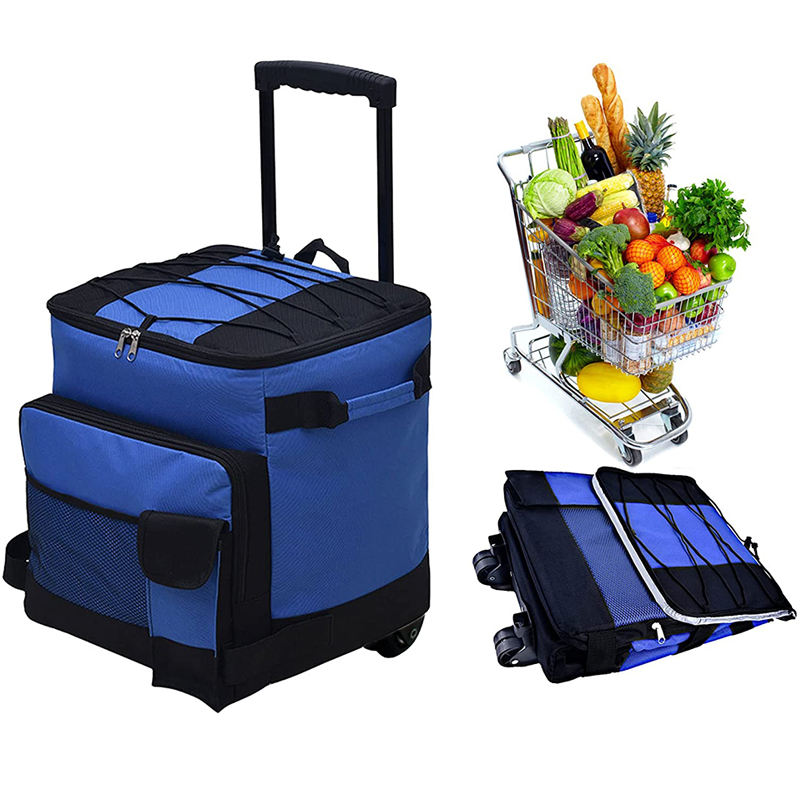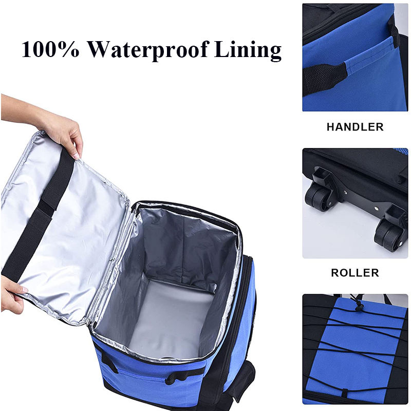 حقيبة تبريد متدحرجة كبيرة قابلة للطي بسعة 43 لترًا على عجلات مبرد ناعم للغاية مع عجلات ومقبض