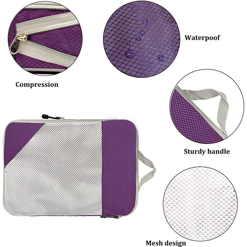 بيت / منتجات / حقيبة سفر / مكعبات السفر / حقيبة تخزين الأحذية خفيفة الوزن قابلة للتوسيع ، 4 مجموعات من مكعبات التعبئة المضغوطة للأمتعة