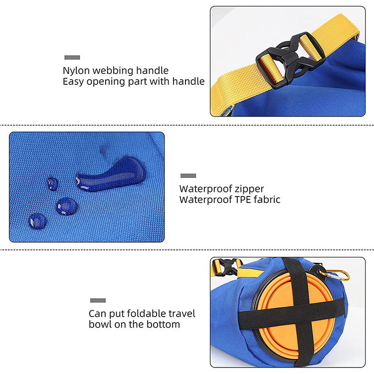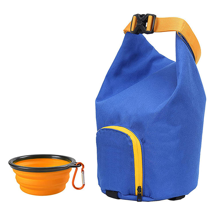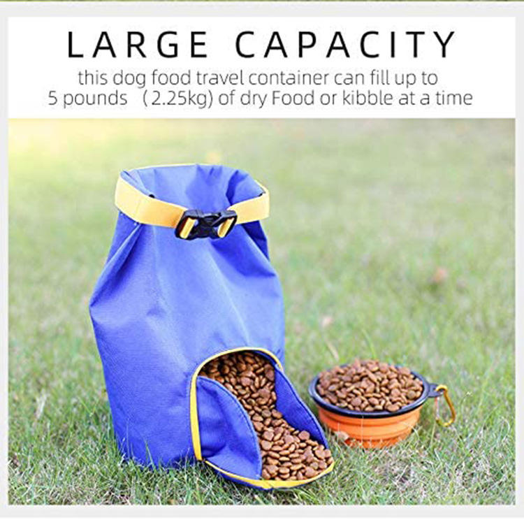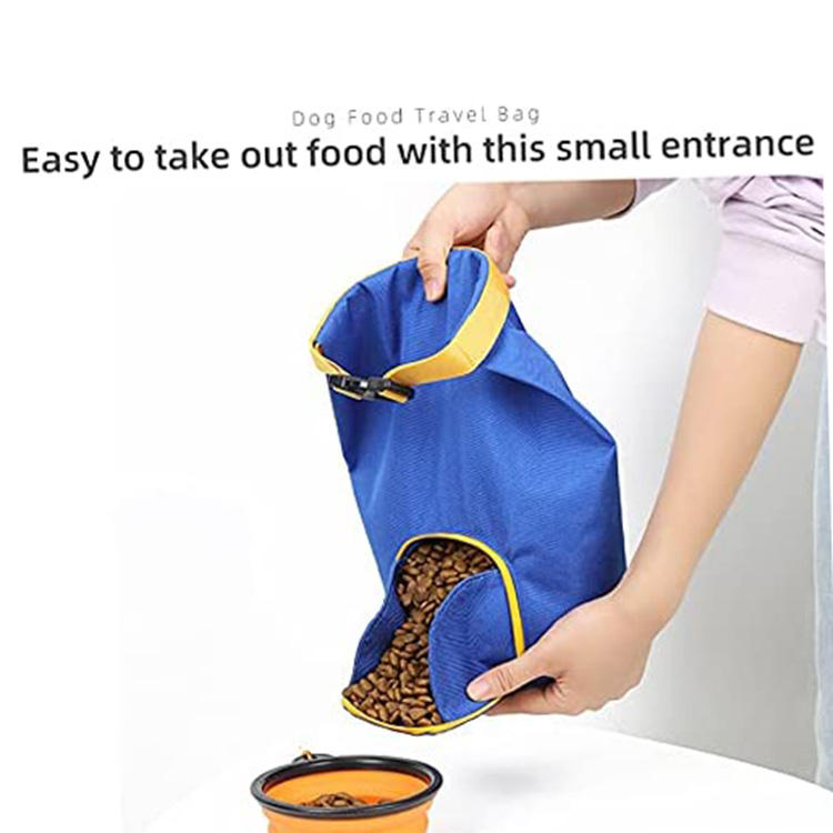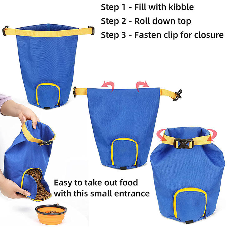 | حقيبة تخزين الوجبات الخفيفة المحمولة للماء للكلاب مع مقبض وإبزيم حقيبة موزع أغذية الحيوانات الأليفة مع وعاء | |