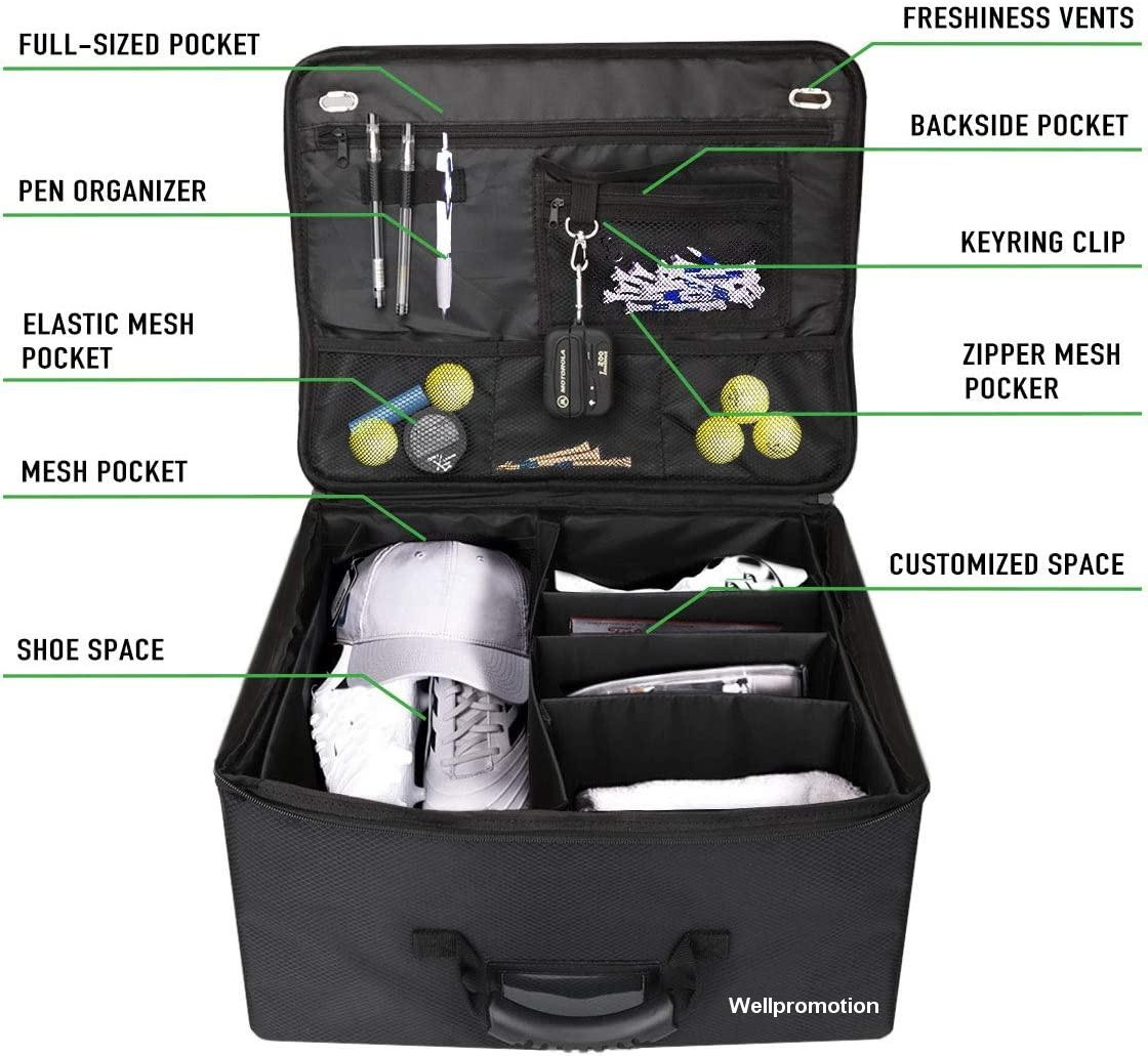 حقيبة تخزين صندوق السيارة للجولف مقاومة للماء للسفر وخزانة ملابس الجولف لتخزين ملحقات الجولف مقصورة قابلة للتعديل
