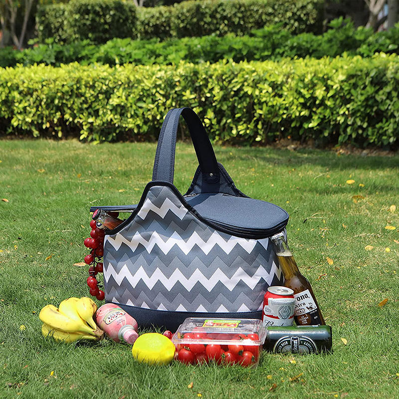 | حقيبة حمل بقالة معزولة مطبوعة 600D مخصصة بنمط شعار حقيبة تبريد الغداء | ||