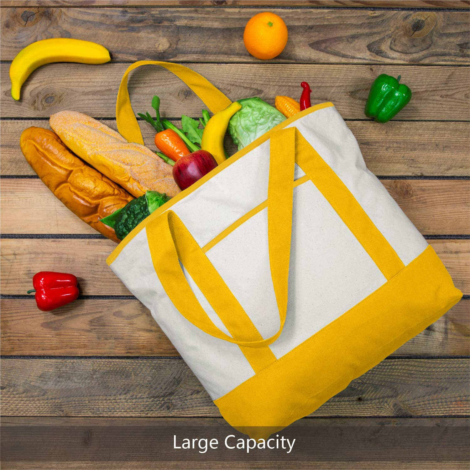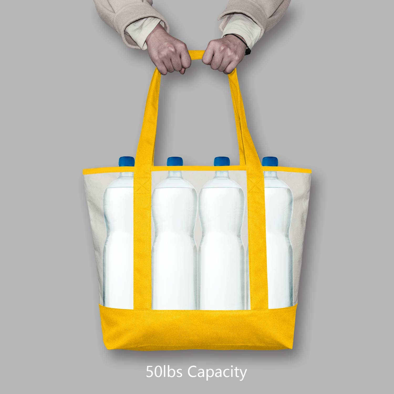 حقيبة حمل غداء للنزهات معزولة حراريًا قابلة لإعادة الاستخدام من القطن قابلة لإعادة الاستخدام للطعام مع جيوب خارجية وداخلية