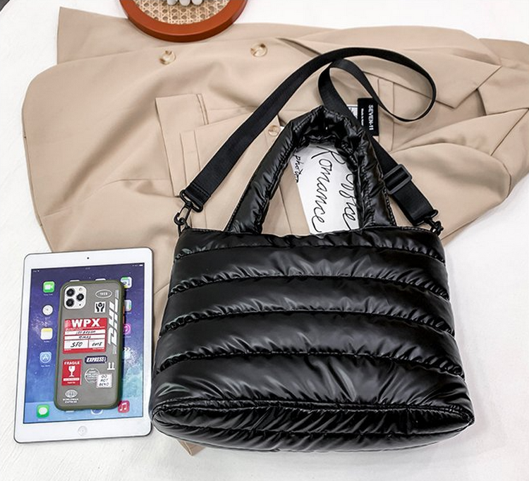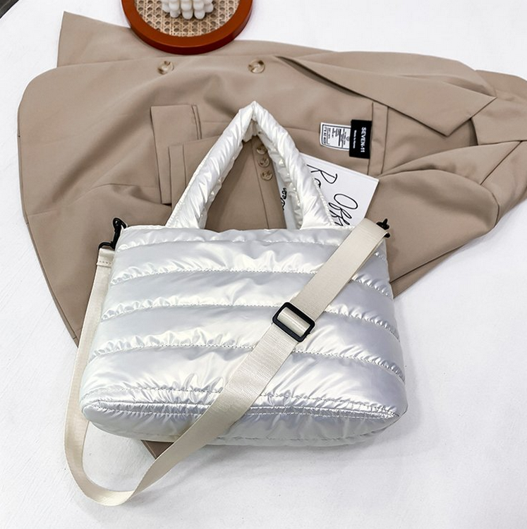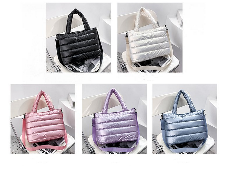 بيت / منتجات / حقيبة حمل مبطنة منتفخة بتصميم لامع مخصصة مبطنة للأسفل حقيبة شتوية كبيرة بشعار مخصص منفوخة حقيبة كروس بودي