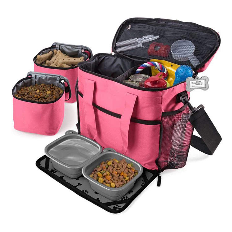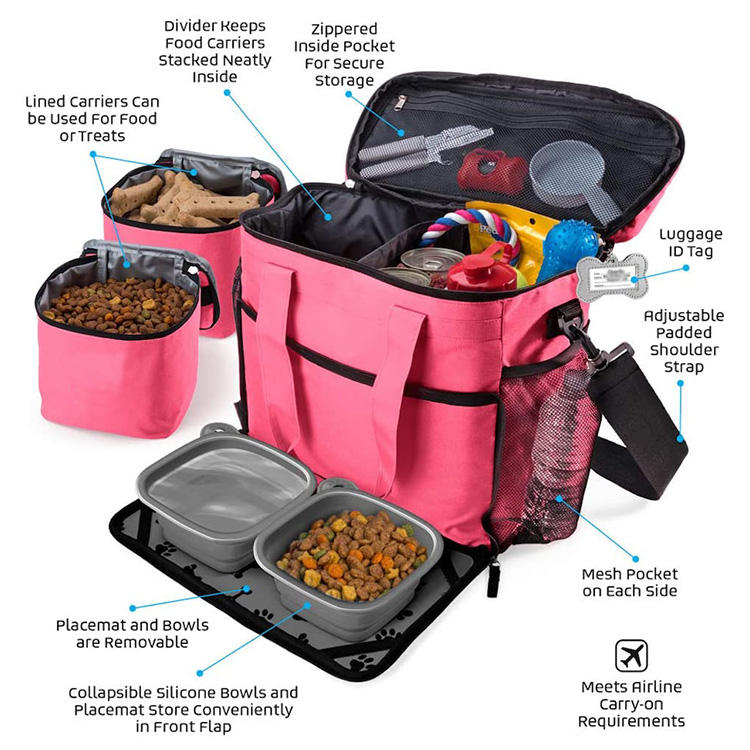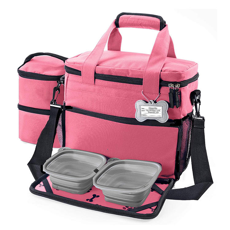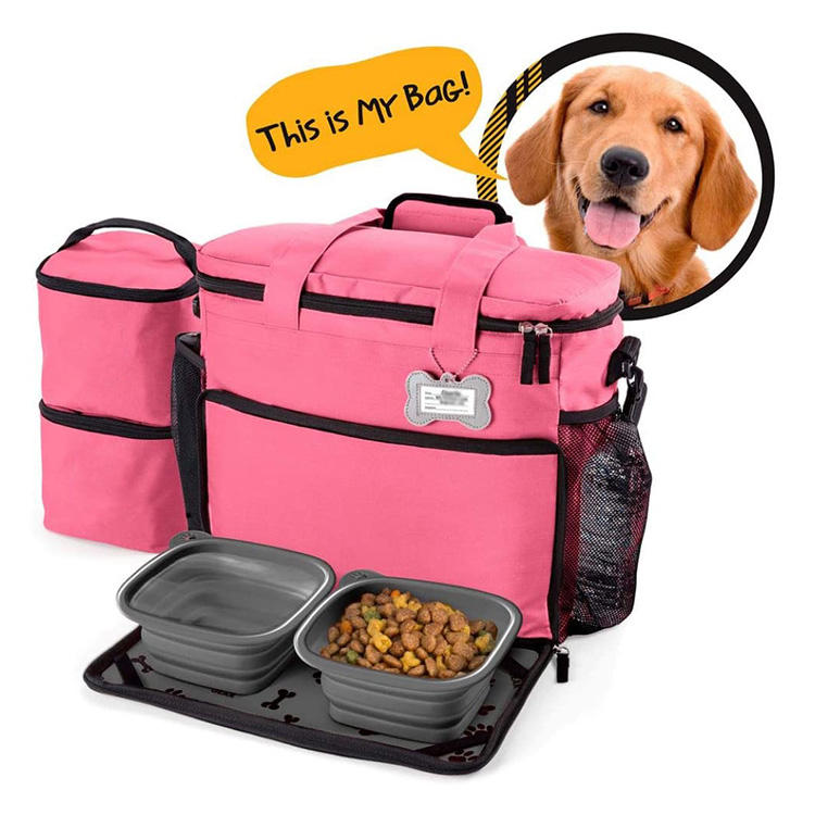| حقيبة حمل مخصصة لتخزين أغذية الكلاب الأليفة ذات سعة كبيرة مع مجموعة وعاء مقاوم للماء للسفر والتخييم | |