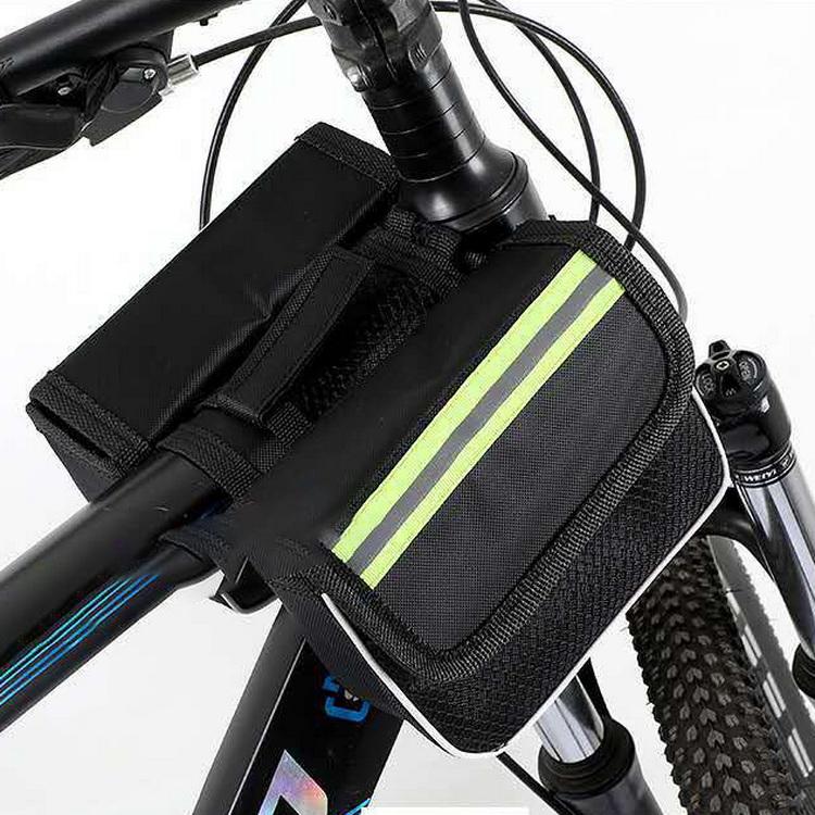 بيت / منتجات / حقيبة دراجة / حقيبة سرج دراجة جبلية مقاومة للماء سوداء بإطار دراجة مقاوم للماء حقائب ذيل أنبوب علوي لركوب الدراجات