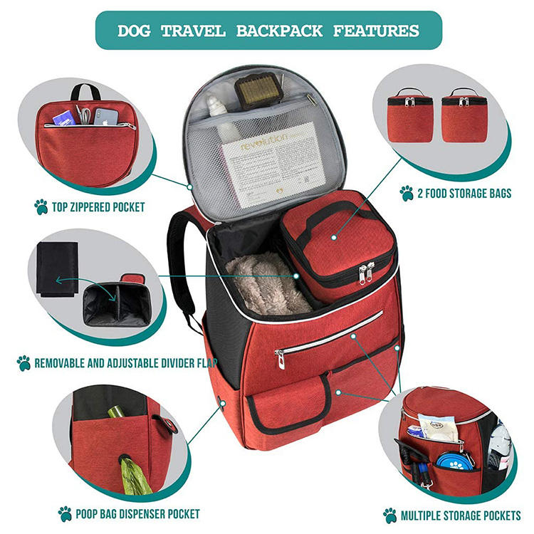 | حقيبة سفر متعددة الجيوب للسفر للكلاب الأليفة حقيبة تخزين ملحقات الكلاب ذات سعة كبيرة مع أوعية قابلة للطي | |