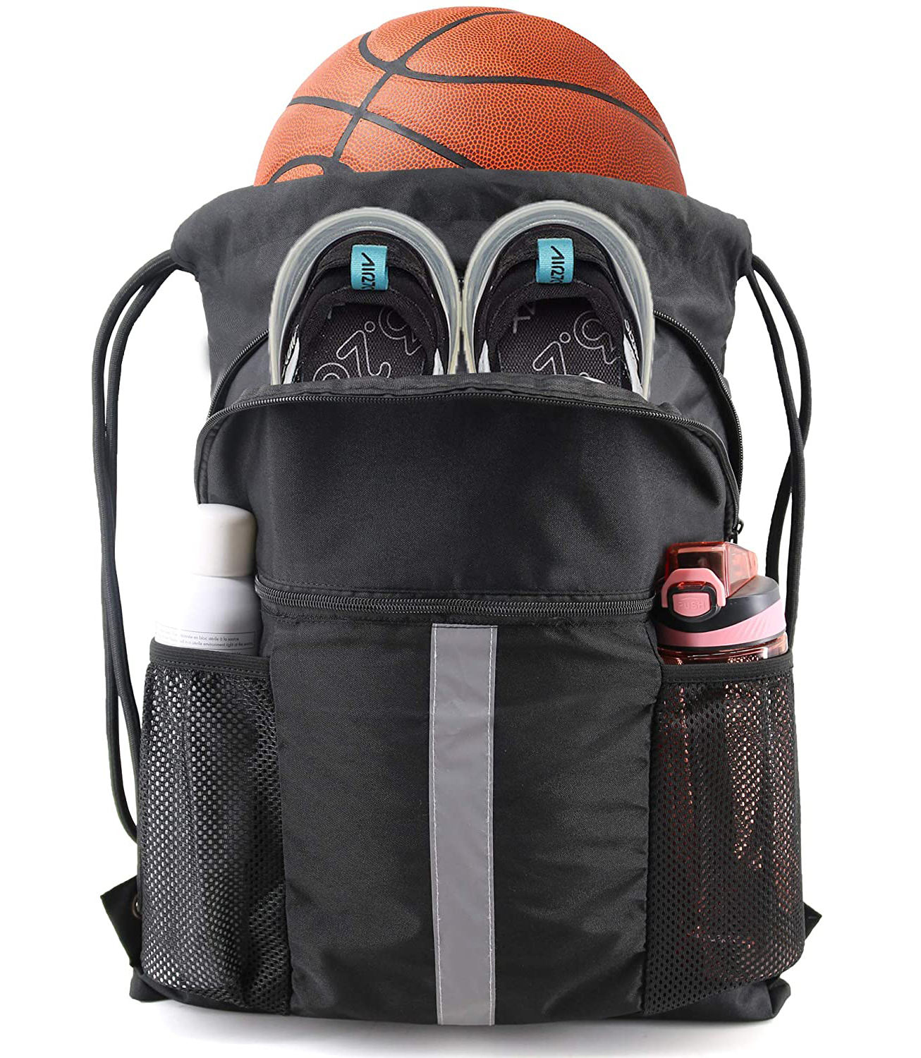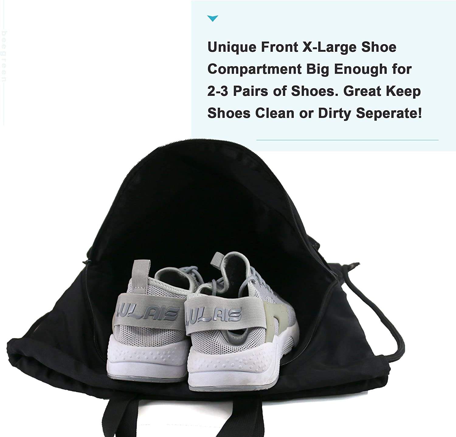 حقيبة ظهر برباط مع حقيبة برباط سوداء بمقصورة الأحذية مع حقيبة حذاء بحوامل شبكية لزجاجات المياه