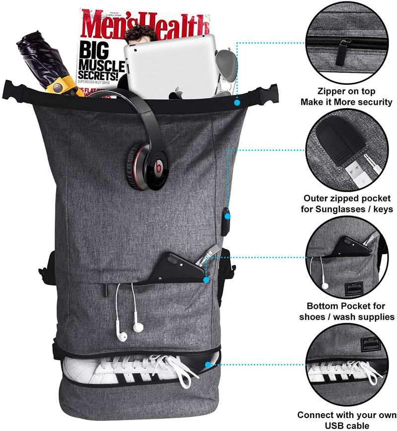 | اسم العنصر | حقيبة ظهر رياضية كاجوال للرجال مع منفذ USB | ||||||