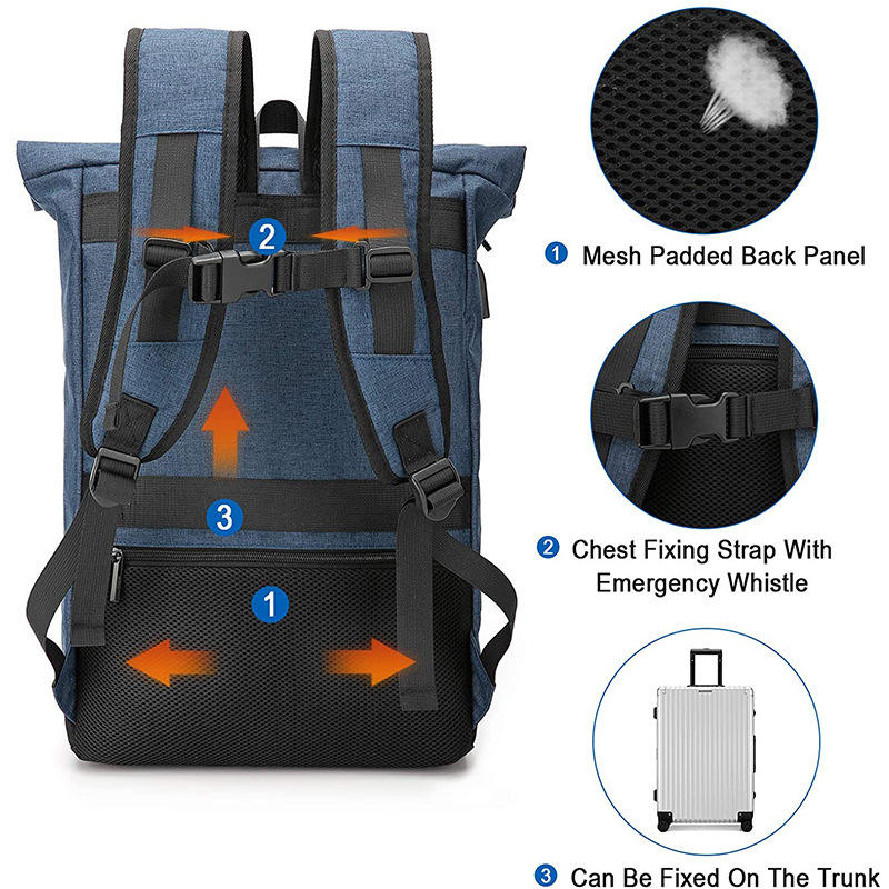 | حقيبة ظهر كبيرة السعة في الهواء الطلق مقاومة للماء للسفر للأعمال حقائب ظهر على شكل لفة أعلى حقيبة ظهر عصرية | ||