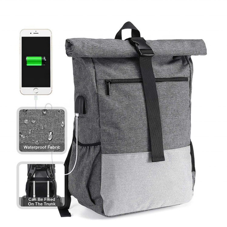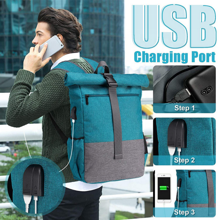 بيت / منتجات / حقيبة ظهر / حقيبة ظهر رول توب / حقيبة ظهر محمولة مقاومة للماء USB مع جيب مضاد للسرقة
