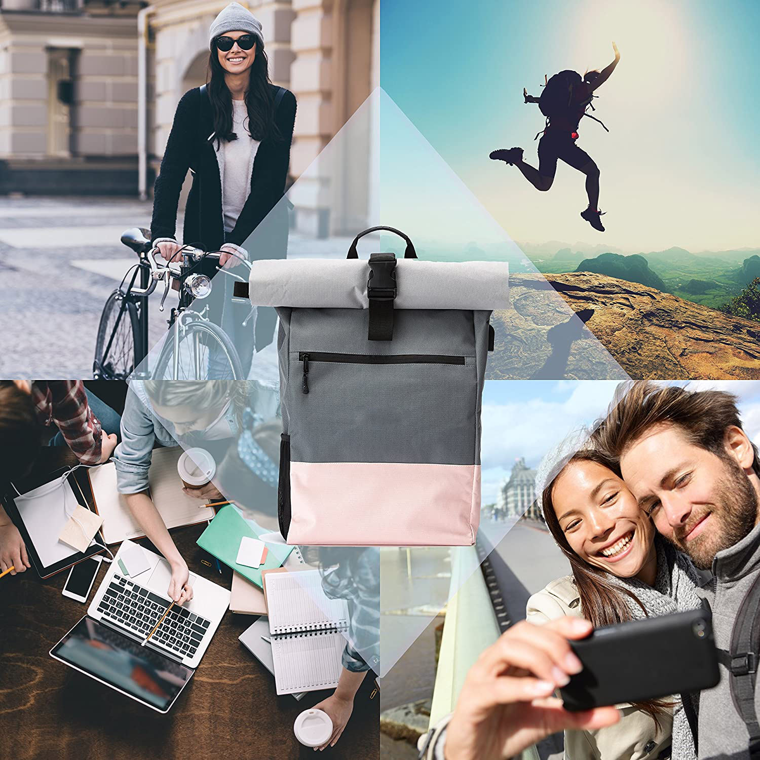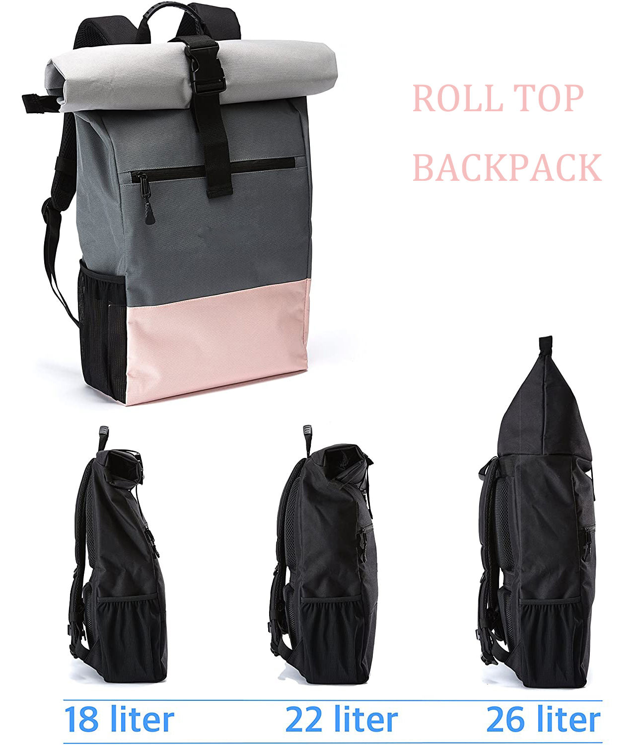 حقيبة ظهر نسائية 18 لتر Daypack Rolltop معاد تدويرها Rpet Rolltop حقيبة ظهر عصرية للسفر حقيبة ظهر للسفر Daypack - اشترِ حقيبة ظهر Rolltop