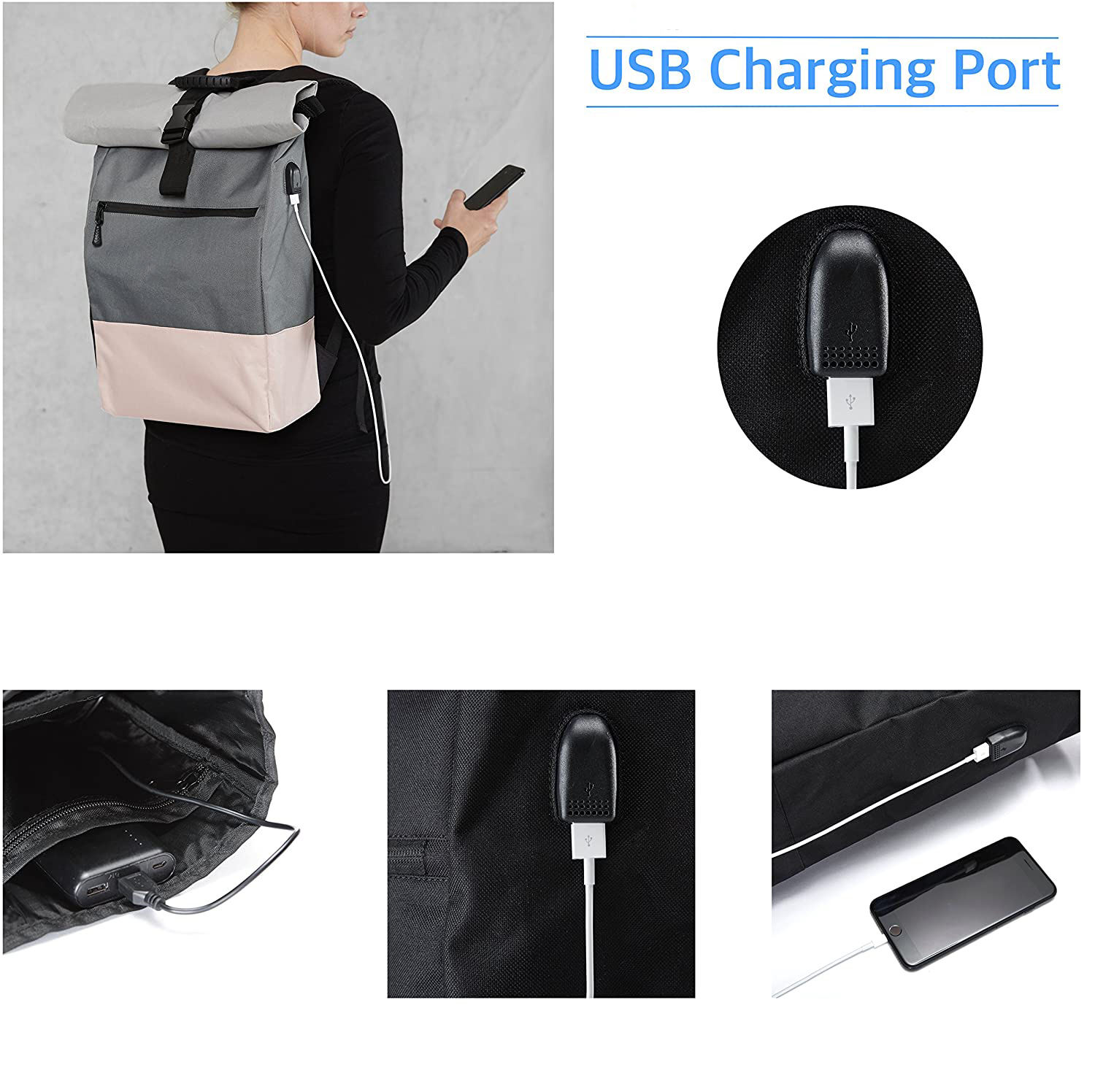 صنع المصنع بالجملة مصمم مخصص لفة أعلى daypack الحقائب المدرسية المعاد تدويرها حقيبة ظهر للسفر للرجال مقاوم للماء مع USB