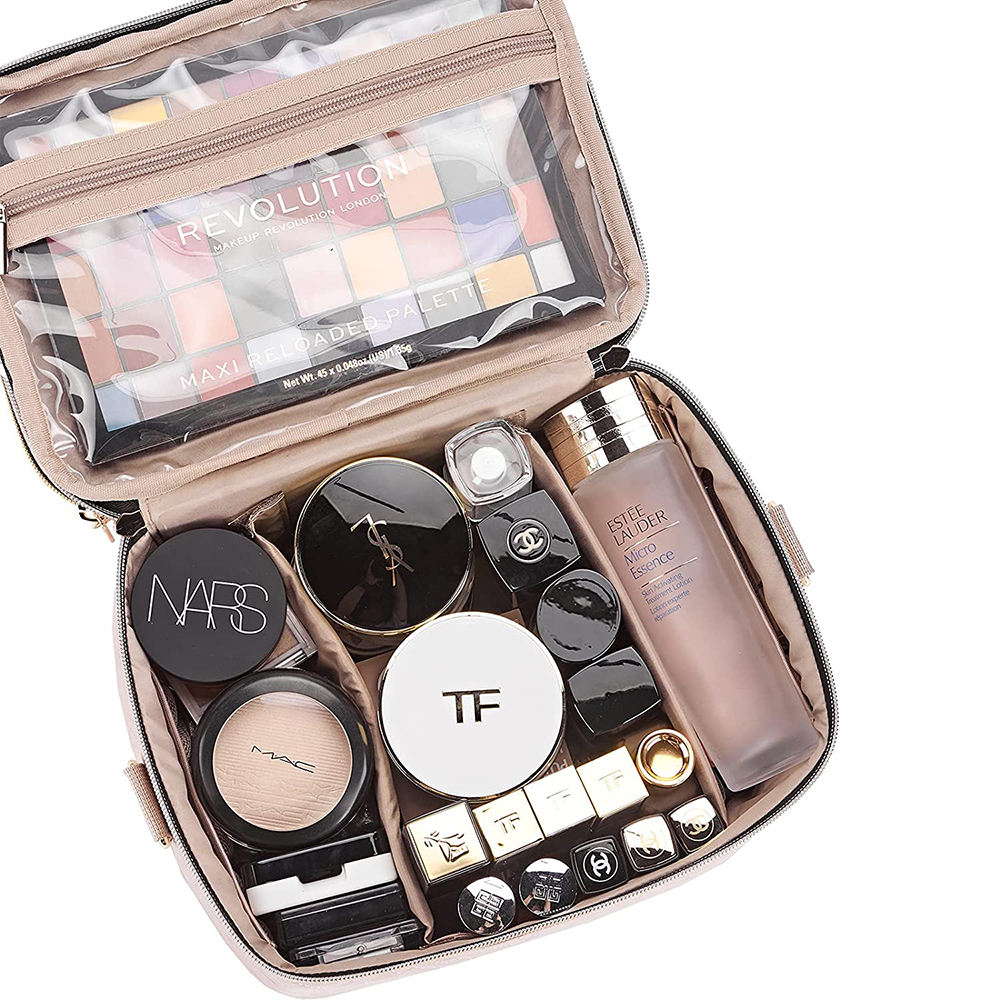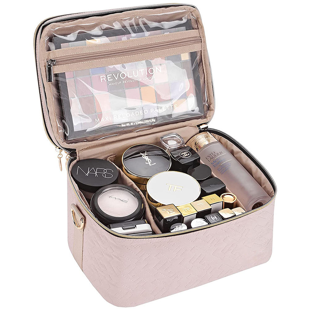 بيت / منتجات / حقيبة مستحضرات التجميل وأدوات الزينة / حقيبة أدوات الزينة / حقيبة مستحضرات التجميل المخصصة للسيدات ذات المقصورة المزدوجة والمخصصة للسيدات مع حقيبة منظم للكتف مع حزام للكتف