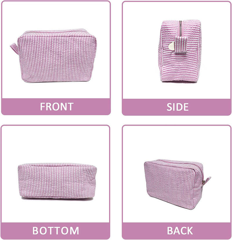 اسم | حقيبة مستحضرات التجميل من Seersucker - حقيبة سفر كبيرة لتنظيم المكياج - حقيبة أدوات الزينة بسحاب ومحفظة للسيدات والفتيات | ||||||