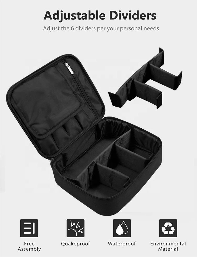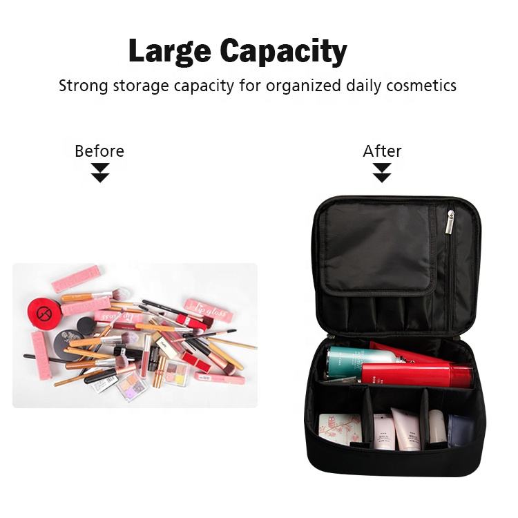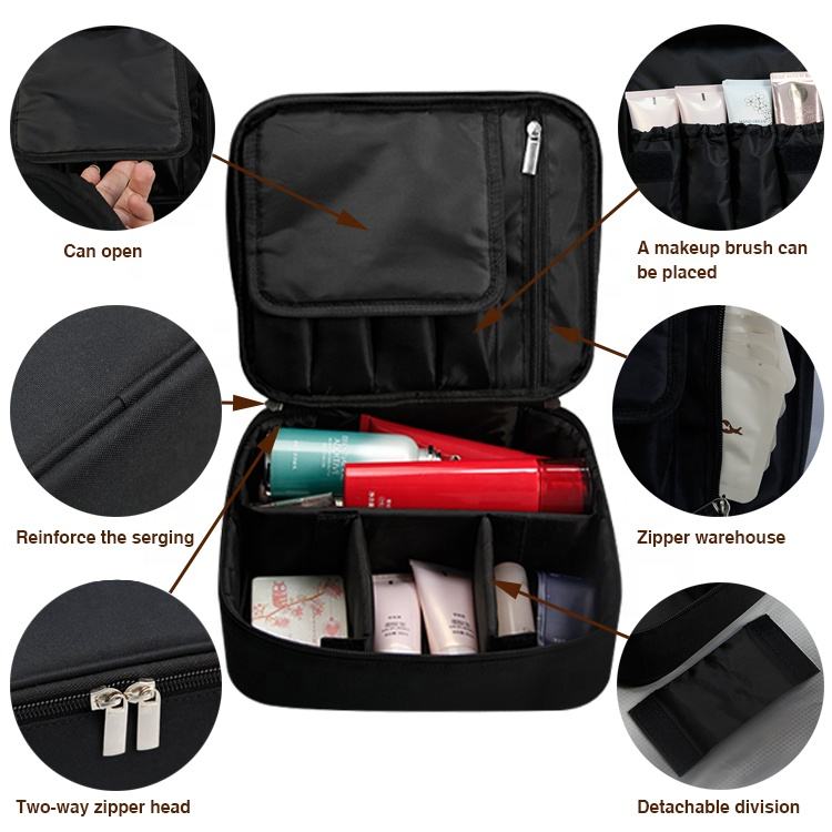 | اسم | حقيبة مستحضرات تجميل سوداء متعددة الوظائف للسفر حقيبة مكياج وفرشاة أدوات الزينة | ||||||