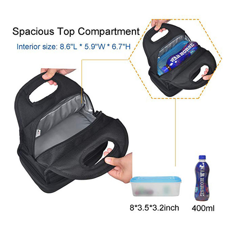 حقيبة معزولة بغداء من طبقتين ، مقصورة مزدوجة ، يمكن حمل الطعام في حقيبة تبريد كبيرة