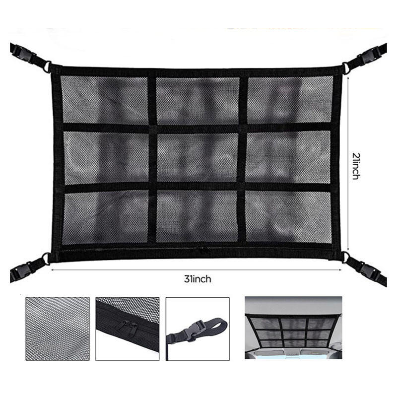 اسم | حقيبة منظم شبكة تخزين السيارة شبكة شبكة شحن البضائع منظم سقف مزدوج الطبقة مع شريط شبكي معزّز | ||||||