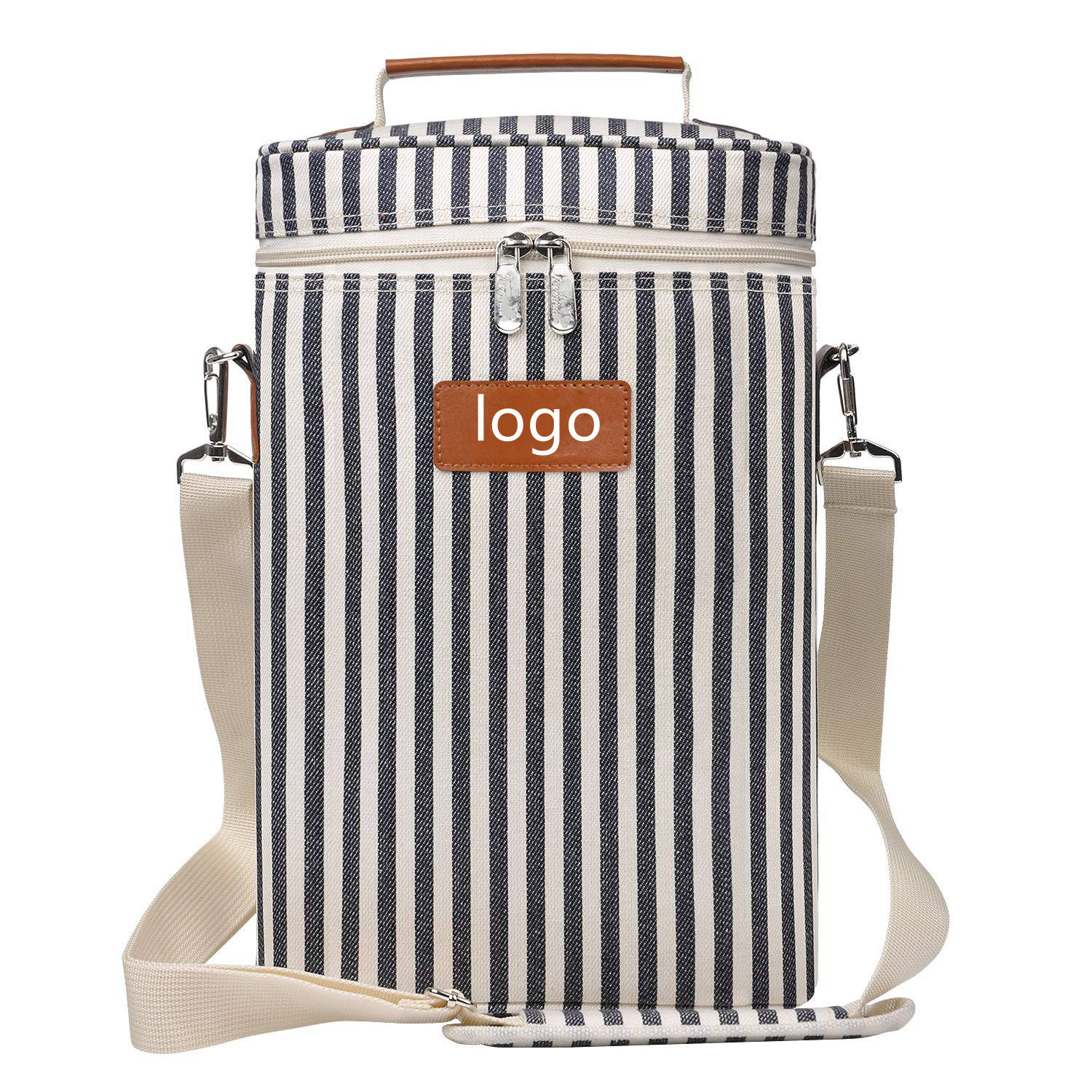 حقيبة نبيذ مبطنة معزولة مانعة للتسرب حقيبة تبريد نبيذ متعددة الاستخدامات 2 زجاجة حامل نبيذ للرجال والنساء للسفر والشاطئ | ||