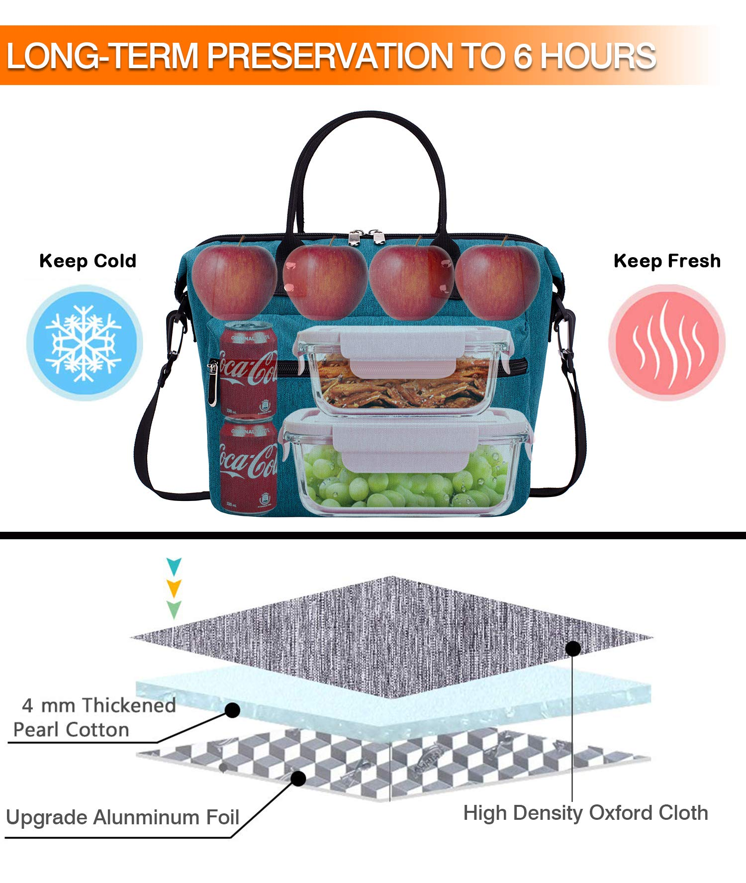 بيت / منتجات / حقيبة تبريد وحقيبة غداء / حقيبة تبريد / حقيبة يد غداء معزولة مانعة للتسرب مع حزام كتف قابل للتعديل والإزالة ، حاوية صندوق غداء متينة قابلة لإعادة الاستخدام للنساء / أنا